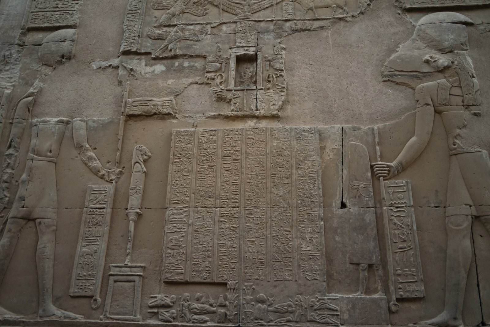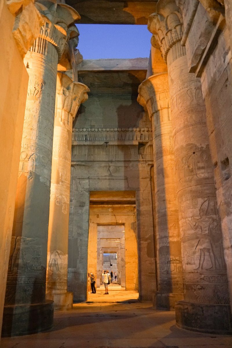 Το Κομ Όμπο, η ελληνιστική πόλις Όμβος, έχει στρατηγική θέση ως σταθμός των καραβανιών προερχομένων από την Νουβία και είχε κατοικηθεί πριν τους ελληνιστικούς χρόνους. Το ενδιαφέρον μας εδώ είναι ο διπλός ναός του θεού-κροκοδείλου Σομπέκ, και του Ώρου του Πρεσβυτέρου ή Αρόερη, ο οποίος μετέπειτα συνδέθηκε με τον Απόλλωνα. Αν και πρόκειται περί ενός συγκροτήματος, τα πάντα είναι διπλά, ως αντικαθρέφτισμα, κατά τον διαμήκη άξονα του ναού. Ενδιαφέρουσα είναι η παραστάσεις αντικειμένων χειρουργικής πως ψαλίδια, νυστέρια, ξύστρες, λαβίδες, διαστολείς και φαρμακευτικές φιάλες όπως και το «Νειλόμετρο» όπου οι ιερείς μετρούσαν στην αρχαιότητα την ποσότητα της λάσπης που κατέβαζε το ποτάμι και βάση αυτής φορολογούσαν την χρονιά εκείνη.