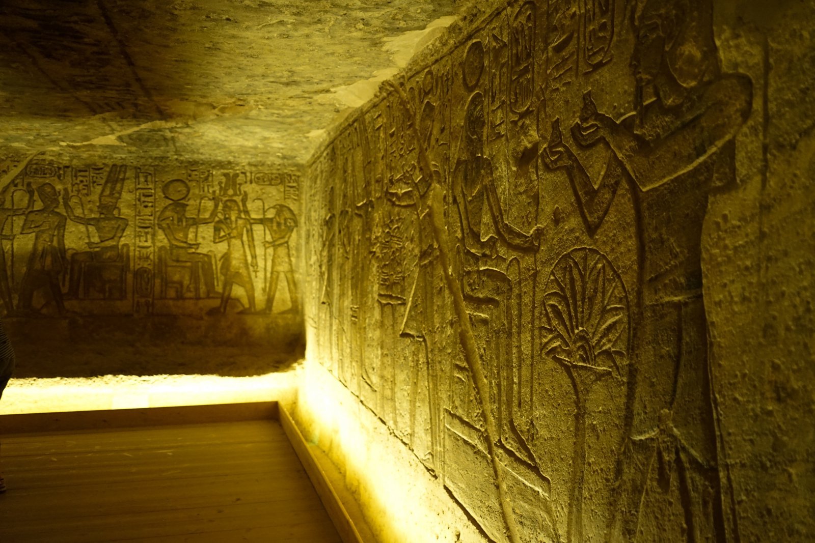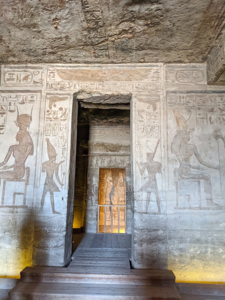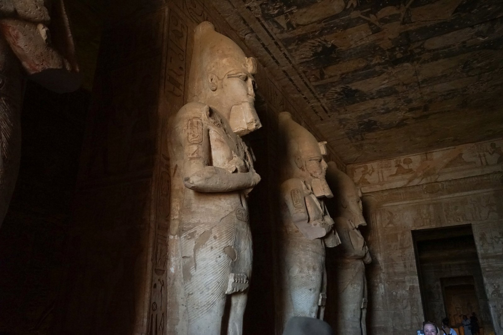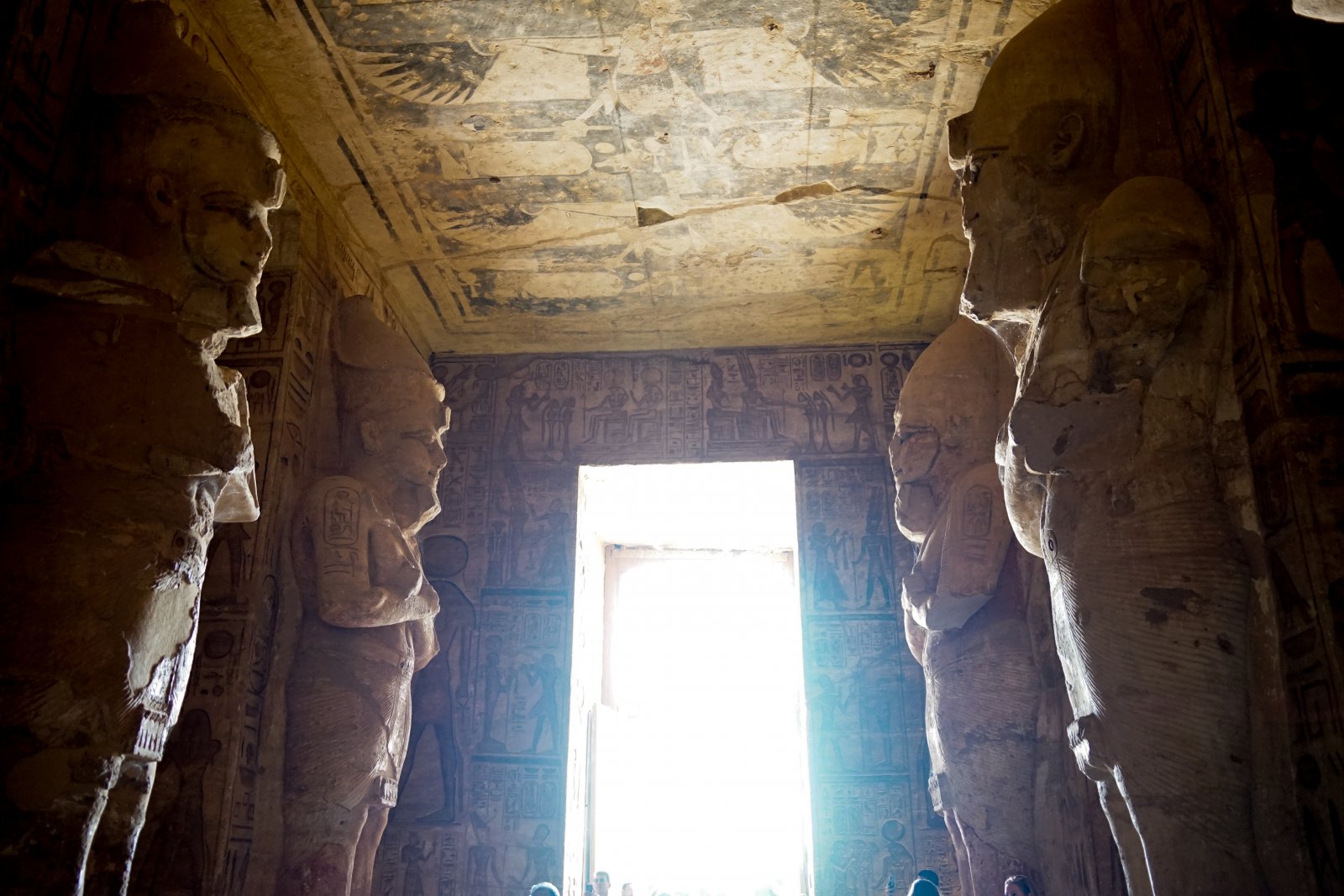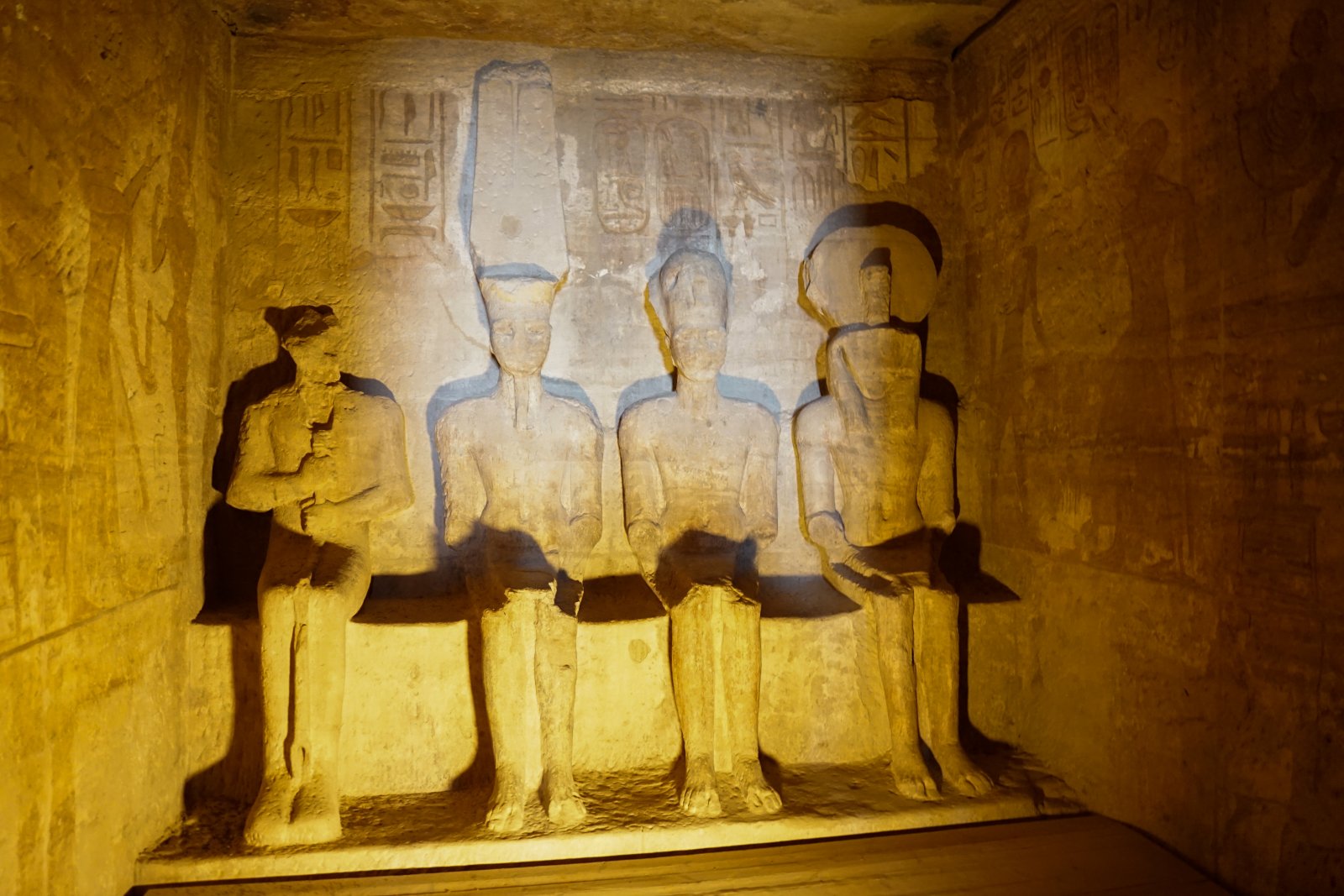 Στον τελευταίο θάλαμο στο βάθος, όπου και το ιερό, καθισμένοι πάνω στο θρόνο τους, οι τέσσερις θεοί του μεγάλου ναού περιμένουν την αυγή. Ο ναός, στην αρχική του θέση, χτίστηκε με τέτοιο τρόπο, ώστε τη 21η Φλεβάρη και 21η Οκτώβρη κάθε χρόνου - ημερομηνίες ενθρόνισης και γέννησης του Ραμσή κατά πως εικάζεται - οι πρώτες ακτίνες του ανατέλλοντος ηλίου να περνούν την είσοδο του ναού, να διασχίζουν την υπόστυλη αίθουσα και τον προθάλαμο και να φωτίζουν κατ’ ευθείαν μέσα στο ιερό τα κατεστραμμένα σήμερα πρόσωπα του Ρα, του Ραμσή και του Άμμωνα, αφήνοντας πάντα σκοτεινό το άγαλμα του θεού Πταχ.