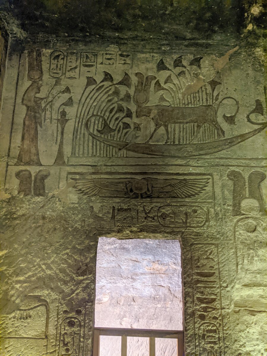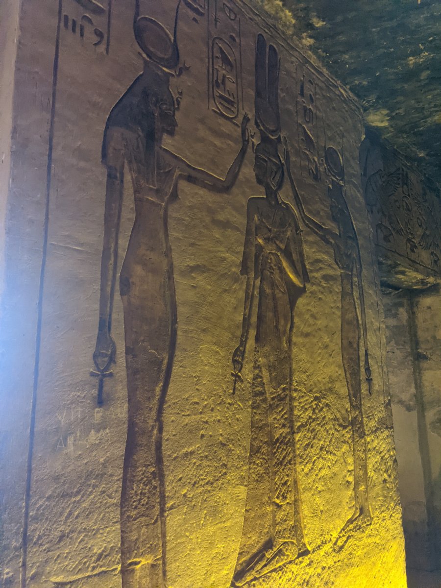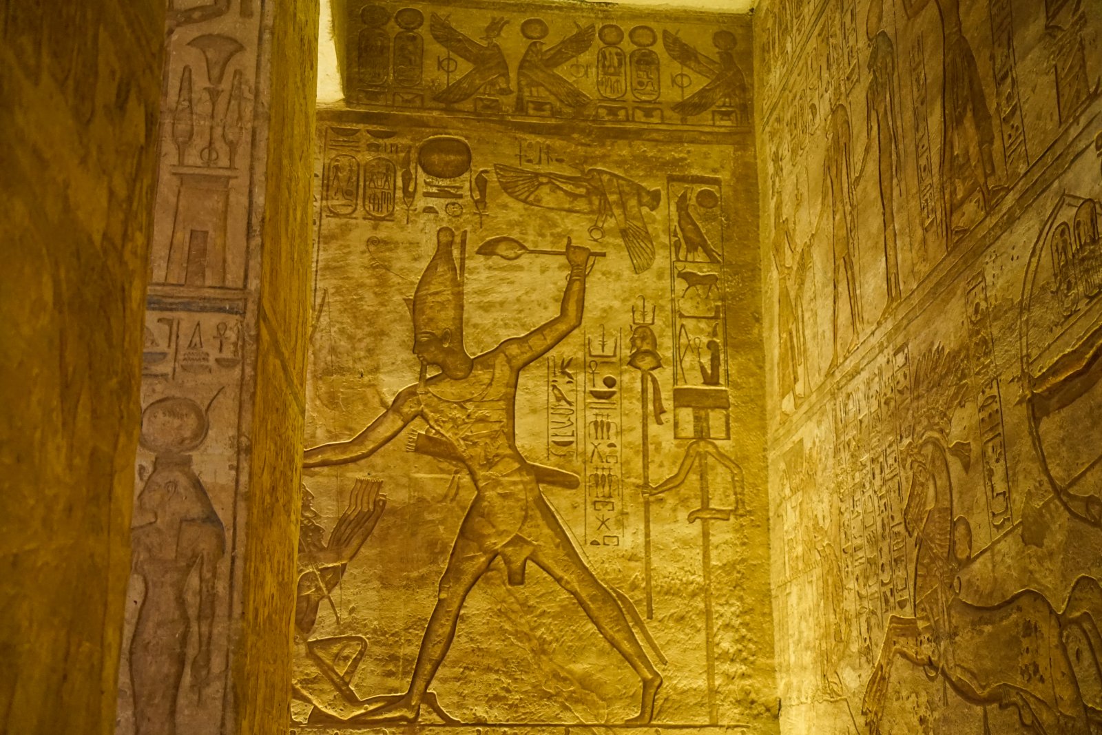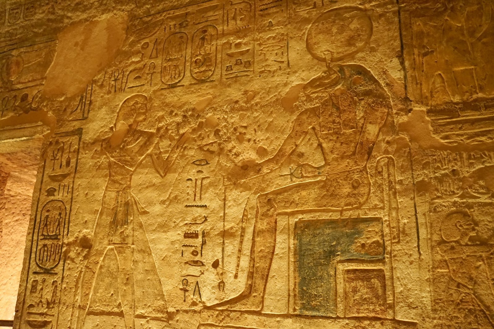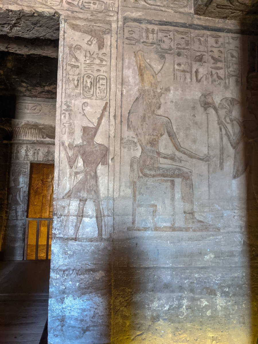 Στον τελευταίο θάλαμο στο βάθος, όπου και το ιερό, καθισμένοι πάνω στο θρόνο τους, οι τέσσερις θεοί του μεγάλου ναού περιμένουν την αυγή. Ο ναός, στην αρχική του θέση, χτίστηκε με τέτοιο τρόπο, ώστε τη 21η Φλεβάρη και 21η Οκτώβρη κάθε χρόνου - ημερομηνίες ενθρόνισης και γέννησης του Ραμσή κατά πως εικάζεται - οι πρώτες ακτίνες του ανατέλλοντος ηλίου να περνούν την είσοδο του ναού, να διασχίζουν την υπόστυλη αίθουσα και τον προθάλαμο και να φωτίζουν κατ’ ευθείαν μέσα στο ιερό τα κατεστραμμένα σήμερα πρόσωπα του Ρα, του Ραμσή και του Άμμωνα, αφήνοντας πάντα σκοτεινό το άγαλμα του θεού Πταχ.