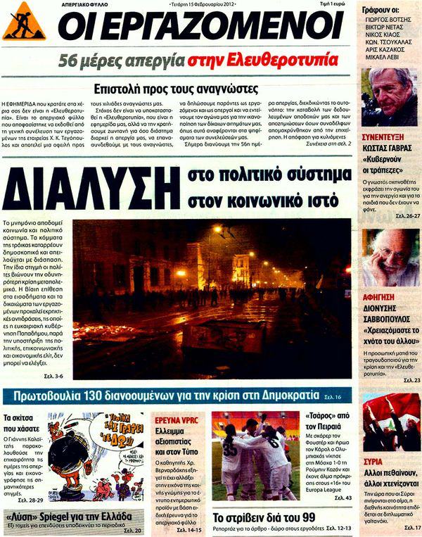 Επειδή τα "μαγαζιά" είναι οι εργαζόμενοι κι όχι οι ιδιοκτήτες τους αναζητήστε σήμερα το απεργιακό φύλλο των επί 56 μέρες απεργών της "Ε".