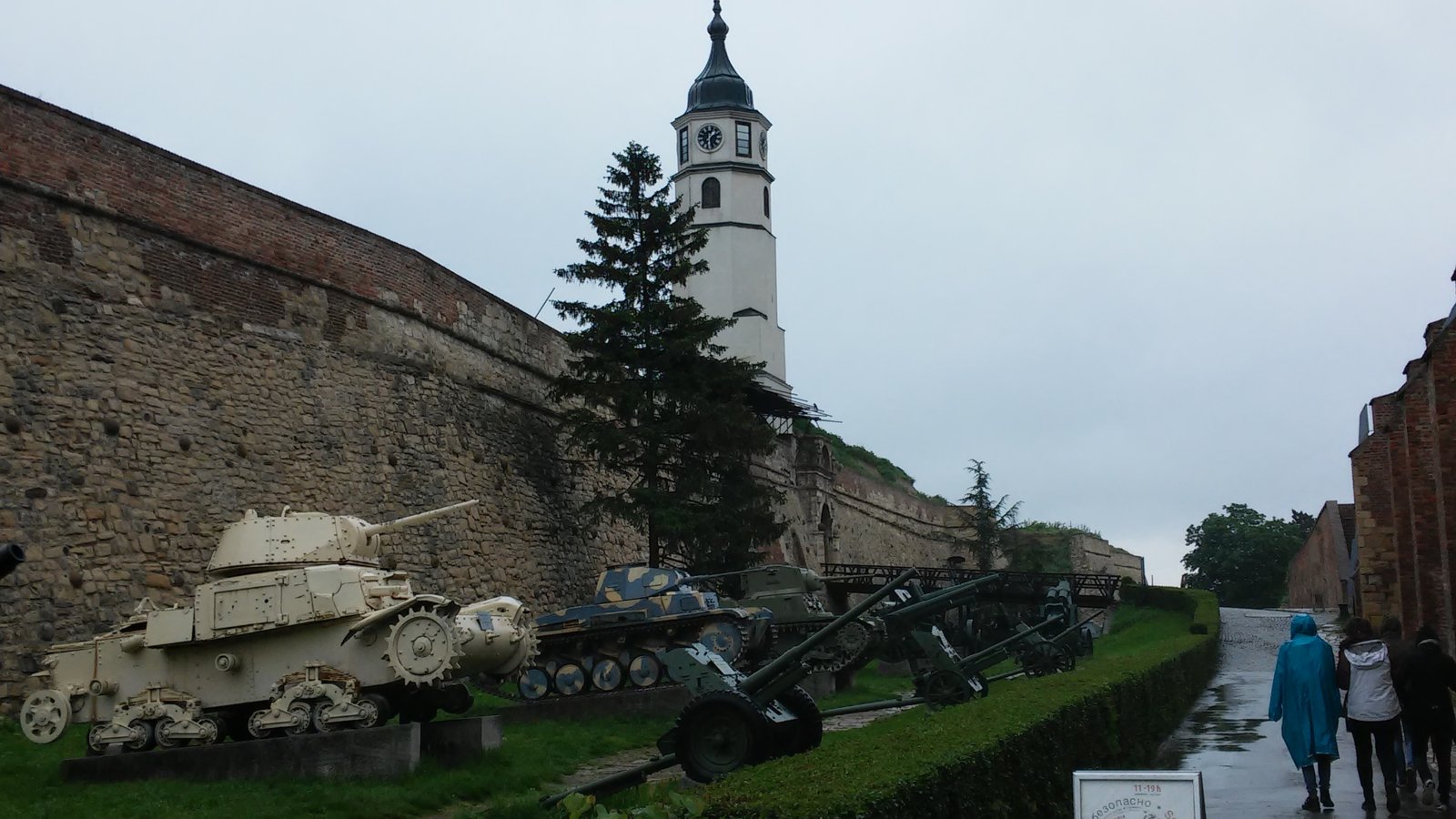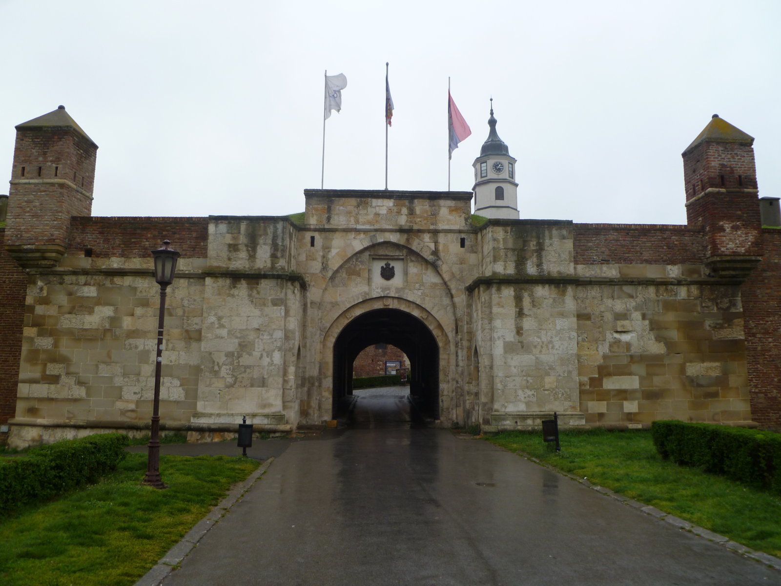 Ο κόσμος λιγοστός, η βροχή να πέφτει με το τουλούμι και να έχει πιάσει και ένας αέρας ο οποίος μας τσάκισε την 1η ομπρέλλα. ¨Οπως καταλαβαίνετε, δε ήταν οι τέλειες συνθήκες για βόλτα. Καναμε μια σταση σε μια καφετερια για ενα καφέ περιμένοντας τα κοπάσει λίγο η κατάσταση, είδαμε πως αυτό δεν πρόκειται να γίνει, και το πήραμε απόφαση να προσπαθησουμε να ανέβουμε στο φρούριο (Kalemegdan). Λοξοδρομήσαμε λίγο στην αρχή, περάσαμε απο τον Ναό του Αρχαγγελου Μιχαήλ από την Kralia Petra, ανάψαμε το κεράκι μας και βάλαμε ρότα για το Kalemegdan.