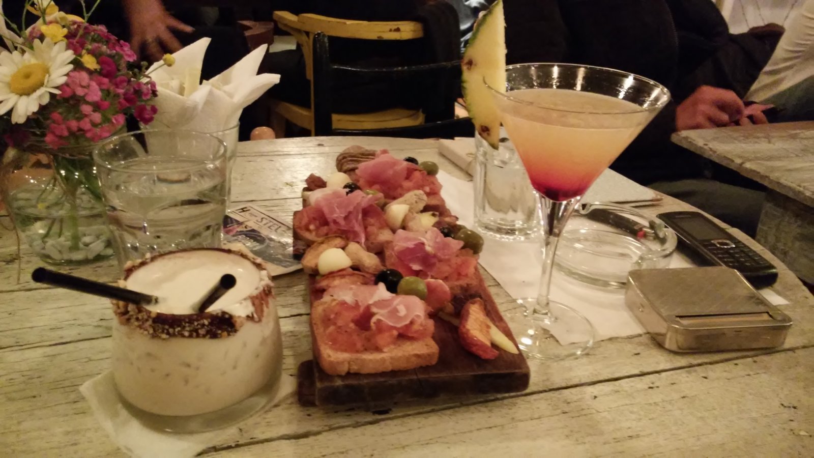 Καθίσαμε τελικά στο μπαράκι Jazz Basta, το οποίο στεγάζεται σε ενα παλιό σπιτι και στο οποίο φτάνεις σκαρφαλώνοντας κάποιες σκάλες. Πολύ ωραίος χώρος, χαλαρή ατμόσφαιρα, ωραία μουσικούλα και παρέες που ανέμελες πιναν τα ποτάκια τους και συζητάγανε/γελάγανε.Ήπιαμε 4 κοκτέιλς και πήραμε και ενα πιάτο με ωραίες μπρουσκέτες, πληρώνοντας συνολικά 2.350 δηνάρια (περίπου 20 ευρώ). Συστήνεται ανεπιφύλακτα για ένα ποτάκι.
