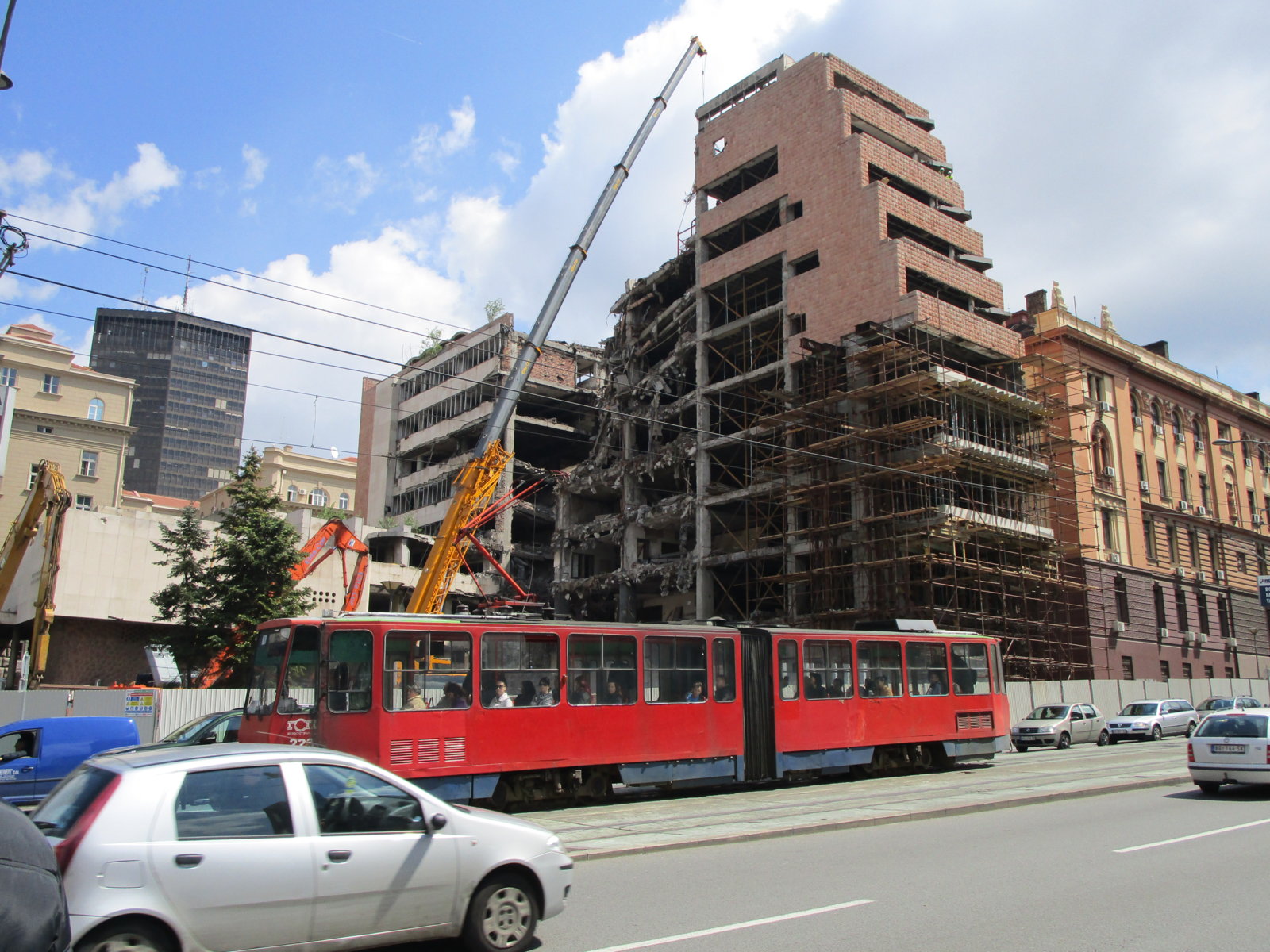 Κατεβήκαμε με το ταξί την Kneza Milosa, στην οποία βρίσκονται και είδαμε και τα βομβαρδισμένα κτήρια απο το ΝΑΤΟ το 1999.