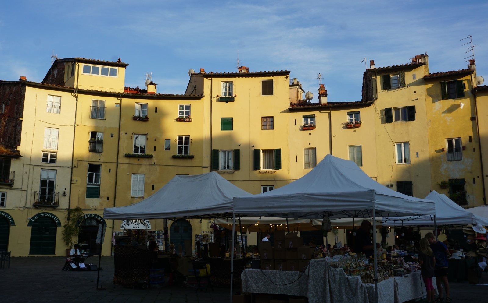 Είχε αρχίσει να σουρουπώνει και τα στομάχια μας διαμαρτύρονταν! Κατευθυνθήκαμε προς τη Piazza dell’Anfiteatro, όπου θέλαμε να φάμε, περνώντας όμως και από άλλα ενδιαφέροντα σημεία της πόλης όπως το Teatro del Giglio, τη Piazza San Giovanni με την ομώνυμη εκκλησία και τον καθεδρικό του San Martino. Μπροστά στο καθεδρικό είχε γίνει ή θα γίνονταν κάποια εκδήλωση και υπήρχαν στημένα ηχεία και καρέκλες σε όλη τη πλατεία.