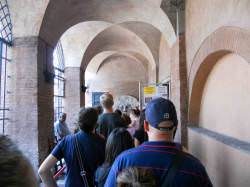 Ανέβαινε πολύς κόσμος είτε με κάτι δίτροχα αμαξίδια (τυχεροί!!), είτε με τα πόδια όπως εμείς, ίσα για να κρυφοκοιτάξουν από την κλειδαρότρυπα! Αφού το είδαμε και αυτό λοιπόν, κατηφορίσαμε πίσω στο Σίρκο Μάσιμο και από εκεί πήραμε λεωφορείο για την πιάτσα Μπαρμπερίνι. Εκεί μας περίμενε μια πολύ ωραία τρατορία, πρόταση της romantic woman, την οποία ακολουθήσαμε φυσικά. Trattoria Gioia Mia στη Via degli Avignonesi. Χωμένη σε ένα δρομάκο πίσω από την πιάτσα Μπαρμπερίνι, το περιβάλλον αλλά και ο κόσμος μας προδιέθεταν ευχάριστα. Δοκιμάσαμε πολύ ωραίες και γευστικές πίτσες, ήπιαμε και τα εσπρεσάκια μας και γραμμή για το ξενοδοχείο.
