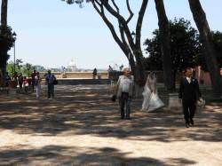 Σα γνήσιοι τουρίστες περιμέναμε κι εμείς και μετά την αναμνηστική φωτογραφία, ανηφορίσαμε τον Αβεντίνο λόφο. Πρώτη στάση το πάρκο Σαβέλο, ή αλλιώς ο κήπος με τις πορτοκαλιές. Ένα καταπράσινο παρκάκι, με όμορφη θέα όλης της Ρώμης (έχω ένα θεματάκι με όλα τα σημεία που έχουν ωραία θέα και θέλω να τα επισκέπτομαι ΟΛΑ!). Από ότι φάνηκε, το πάρκο αυτό είναι διάσημο γιατί όση ώρα μείναμε εκεί, είδαμε 4 νεόνυμφα ζευγάρια να έρχονται εδώ για φωτογράφιση.