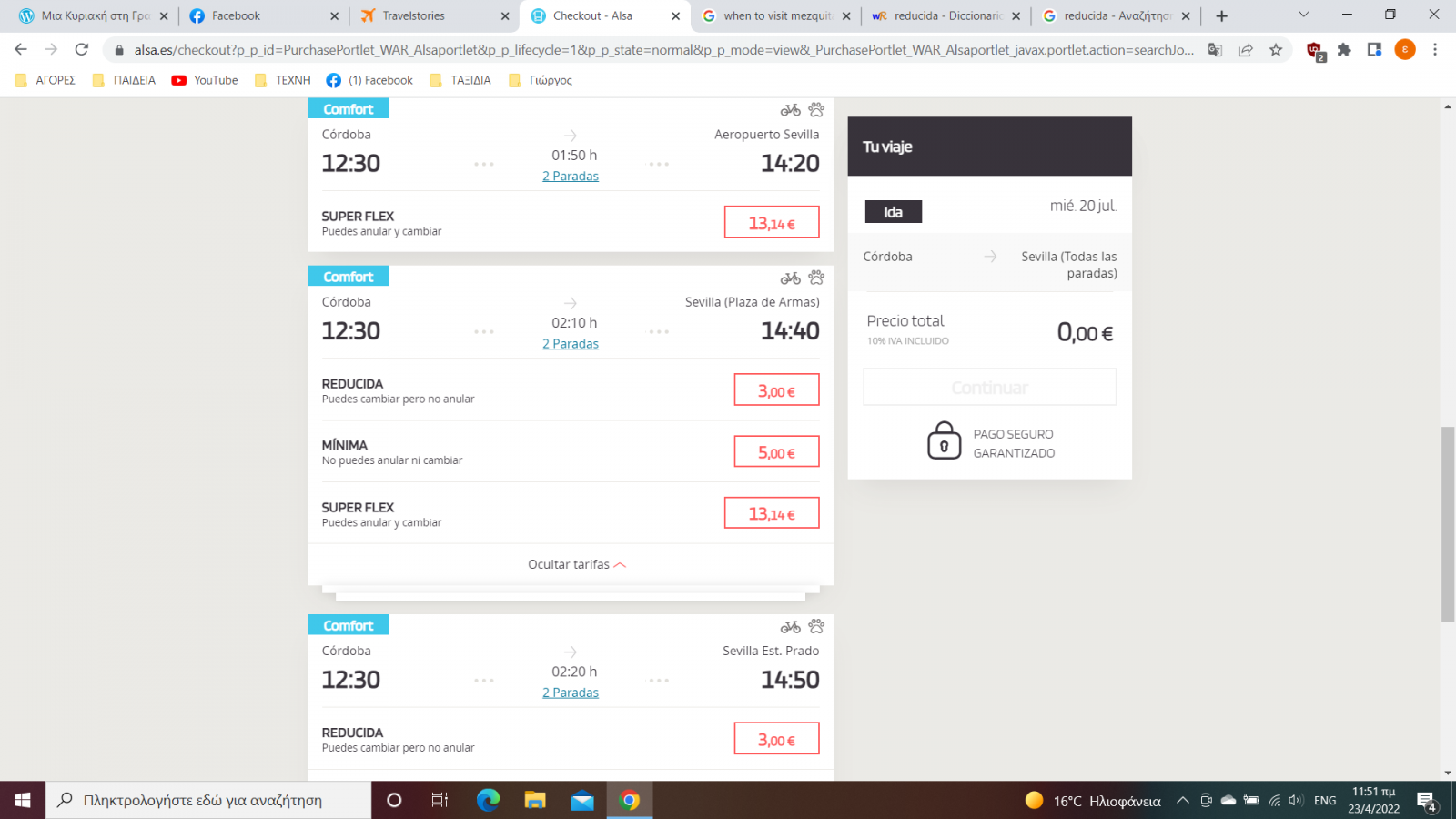 Έριξα μια ματιά στα εισιτήρια μεταξύ των πόλεων της Ανδαλουσίας (απλετος χρόνος λόγω πολυήμερης καραντίνας) και συναντώ αυτή την εικόνα: