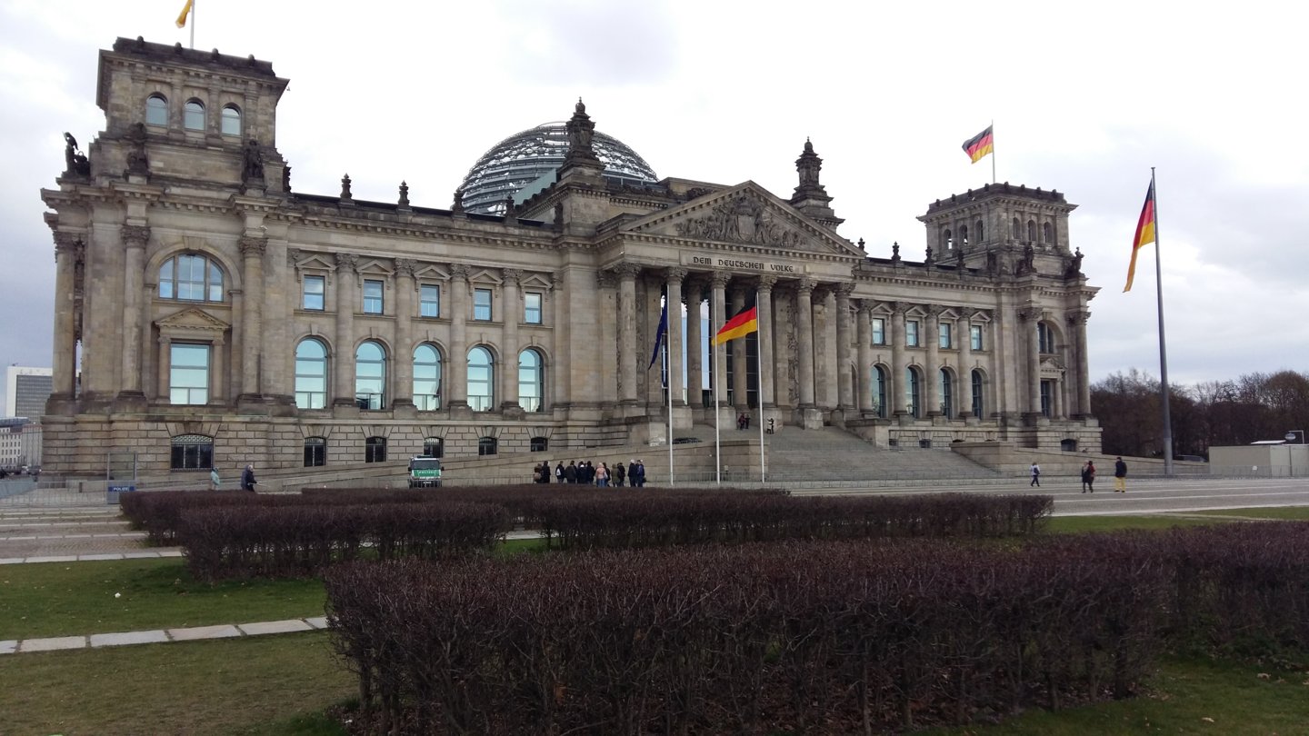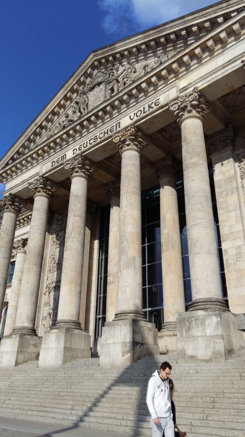 Συνεχίσαμε την περιπλάνηση μας στην πόλη με επόμενο σταθμό το Reichstag, προκειμένου να προμηθευτούμε τα κατάλληλα έγγραφα που απαιτούνται για την επίσκεψη στο Γυάλινο θόλο του. Η διαδρομή και πάλι είχε πολύ ενδιαφέρον καθώς συναντήσαμε κτίρια ιδιαίτερης αρχιτεκτονικής. Όταν φτάσαμε στο Γερμανικό Κοινοβούλιο και μετά από αρκετές ερωτήσεις κατευθυνθήκαμε στο κιόσκι που σε προμηθεύουν με την κατάλληλη άδεια εισόδου για το θόλο. Πρέπει να έχετε μαζί σας ταυτότητες για την άδεια εισόδου. Μετά από αρκετή αναμονή πλέον της ώρας και αφού επιλέξαμε την ημέρα και την ώρα επίσκεψης, πήραμε το απαραίτητο έγγραφο-άδεια. Κατά την αναμονή μας στην ουρά εμφανίστηκε και ένας σκίουρος που ξεπρόβαλε από το Tiergarten που στην ουσία συνορεύει με την Γερμανική Βουλή.