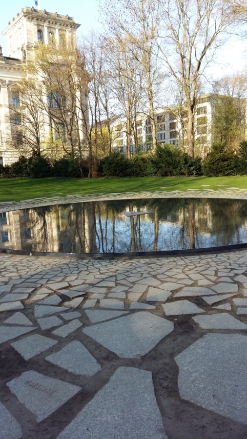 Συνεχίσαμε μέσω του πάρκου για την Πύλη του Βρανδεμβούργου. Στον ενδιάμεσο της μικρής διαδρομής υπάρχει μια λιμνούλα, μνημείο για τους Ρομά που εκκαθαριστήκαν κατά την ναζιστική περίοδο. Πόλυ σύντομα βρεθήκαμε στην Πύλη.