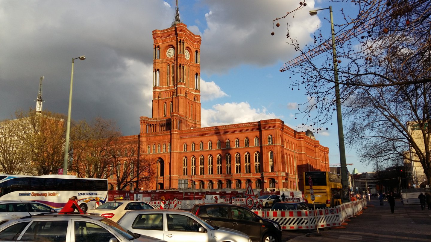 Ο ήλιος έκανε ξανά την εμφάνιση του και φώτισε την πολύ-φωτογραφημένη Πύλη. Μετά τις απαραίτητες φωτογραφίες αποφασίσαμε να διασχίσουμε την Unter den Linden. Ο δρόμος με τις φλαμουριές, είναι μια ξακουστή μεγάλη λεωφόρος που ενώνει την Πύλη του Βραδεμβούργου με την περιοχή Mitte. Κατά μήκος της, υπάρχουν πολλά σημεία ενδιαφέροντος, όπως μουσεία, πρεσβείες, καφέ, και θεωρείται ένας από τους πιο όμορφους περιπάτους στο Βερολίνο. Δυστυχώς τα έργα που γίνονται στο μέσο αυτής καθ όλο του μήκους της μας απογοήτευσαν. Στην ουσία, ήταν ένα μεγάλο εργοτάξιο που σου στερούσε την οπτική επαφή με την απέναντι πλευρά της Λεωφόρου. Η απογοήτευση συνεχίστηκε όταν φτάσαμε στο ύψος της Βebelplatz, προκειμένου να δούμε το μνημείο, όπου οι Ναζί το 1933 κάψαμε περί τα 20.000 βιβλία, ανάμεσα σε αυτά βιβλία του Μαρξ, της Λούξεμπουργκ, του Φροιντ κ.α., χωρίς και αυτό όμως να είναι προσβάσιμο και ορατό λόγω του εργοταξίου. Συνεχίσαμε την βόλτα και καταλήξαμε στο Μαρξ και Ενγκελς Φόρουμ και στην συνέχεια συναντησαμε τπ Κόκκινο Δημαρχείο.Το Φόρουμ είναι ένα μικρό πράσινο πάρκο, στο οποίο βρίσκονται τα περίφημα αγάλματα του Μαρξ και του Ένγκελς. Σε κάθε περίπτωση, ακόμα και με την ύπαρξη των εργοταξίων, πρόκειται για ένα απολαυστικό περίπατο. Κάπως έτσι λοιπόν φτάσαμε αργά το απόγευμα στο ξενοδοχείο μας.