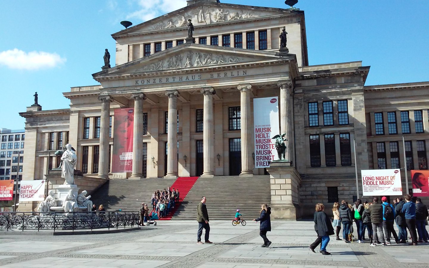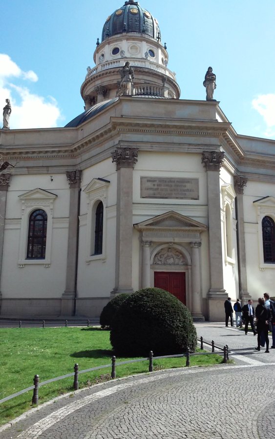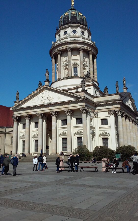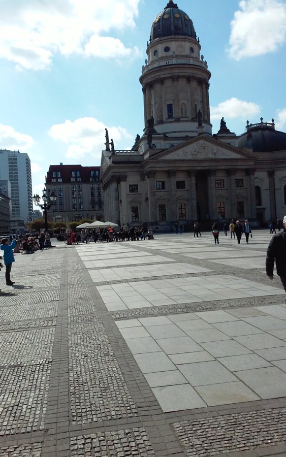 Το μουσείο μας εντυπωσίασε και πραγματικά ενθουσιασμένοι συνεχίσαμε με τα ποδήλατα μας για το Gendarmenmarkt. Όταν φτάσαμε απολαύσαμε μια κρύα μπύρα στην πλατεία της Gendarmenmark όπου εδρεύει το concert Hall, και 2 εκκλησιές. Αρκετός κόσμος απολάμβανε τον ήλιο ενώ υπήρχαν και αρκετοί μουσικοί του δρόμου.