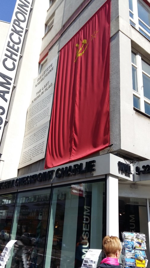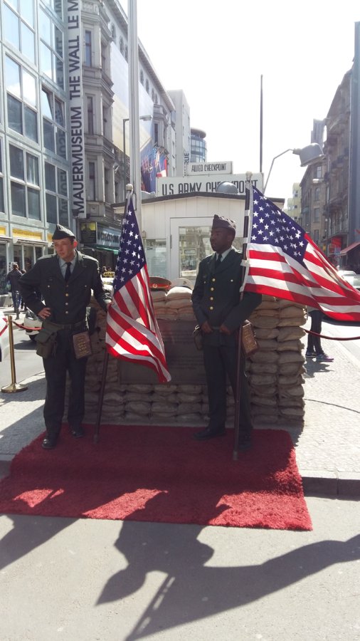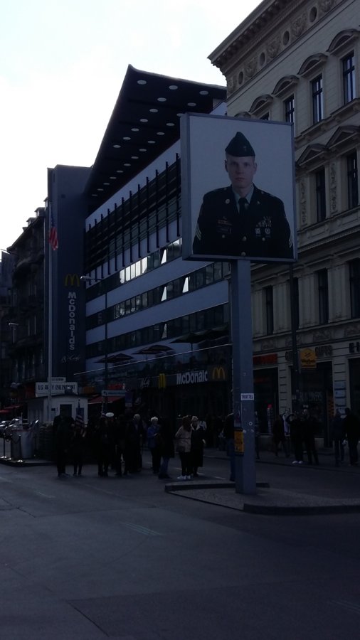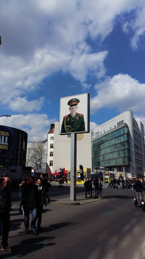 Έχοντας ανακτήσει δυνάμεις κατευθυνθήκαμε προς το Chekpoinτ Charlie. To checkpoint charlie ήταν ένα σημεία έλεγχου και διέλευσης ανάμεσα σε Δυτική και Ανατολική Γερμάνια και αποτελεί σύμβολο εκείνης της ψυχροπολεμικής εποχής. Είναι χαρακτηριστικές οι εικόνες που υπάρχουν εκεί και βλέπεις ότι σε απόσταση λίγων μέτρων βρισκότανε αντιμέτωπα Σοβιετικά και Αμερικανικά άρματα μάχη.