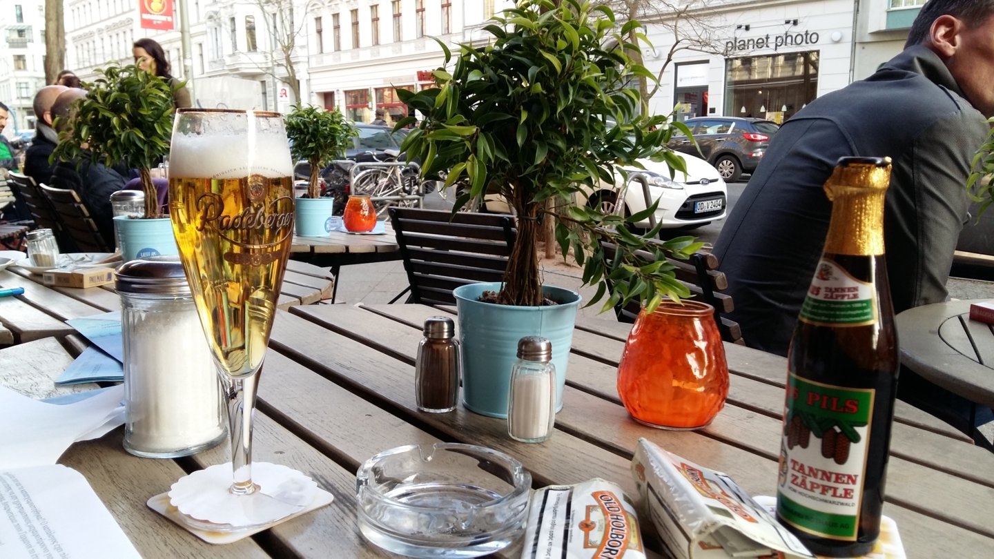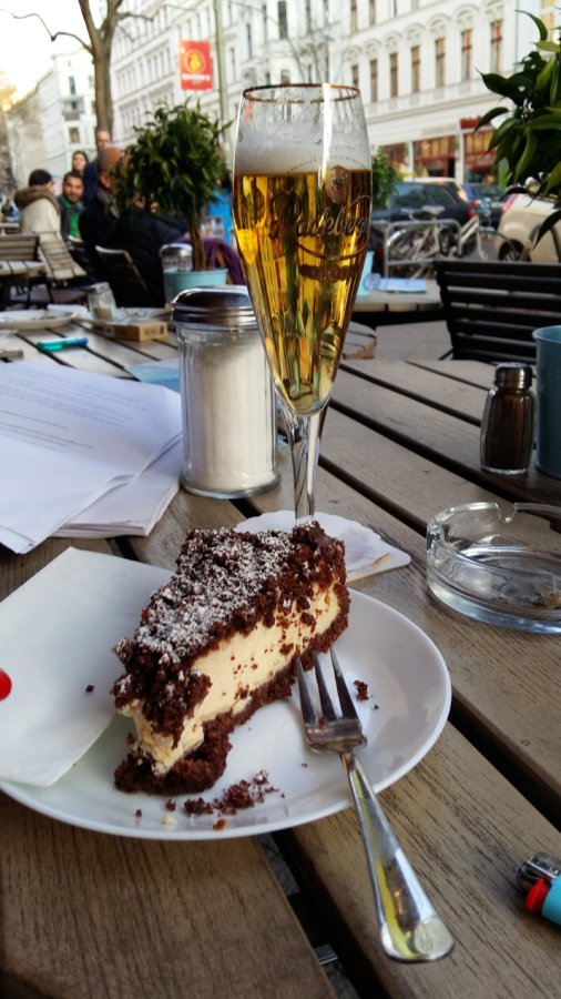 Ο ενθουσιασμός αποτελεί κινητήριο δύναμη και έτσι παρόλη την κούραση μας είπαμε να πάμε στο Kreuzberg. Με την βοήθεια του Gps και με αρκετές ερωτήσεις φτάσαμε. Το Kreuzberg είναι μια ξεχωριστή και πολλή ζωντανή περιοχή του Βερολίνου, στέκι των νέων της πόλης με πολλά καφέ, μπαρ και εστιατόρια και καταλήψεις. Θα συναντήσεις όλα τα ειδή Βερολινεζών από τύπους με κουστούμια μέχρι punk και hipsters. Είναι έντονο και το Τουρκικό στοιχείο. Αφού κάναμε αρκετές βόλτες μιας και έχει και πολύ ενδιαφέροντα μαγαζιά κάτσαμε για μια μπύρα σε ένα καφέ. Η μπύρα βέβαια συνοδεύτηκε και από ένα εξαιρετικό ρωσικό κέικ, όπως μας είπαν, που ακόμα θυμάμαι την υπέροχη γεύση του. Κάτσαμε αρκετή ώρα και ήδη είχε βραδιάσει, όποτε αποφασίσαμε να πάρουμε το δρόμο της επιστροφή προς την mitte.