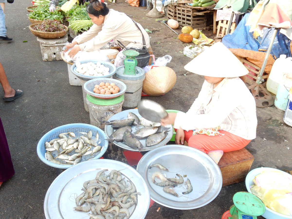 Γυρώ στις 6 κι αφού είχε ξεθεωθεί ο άνθρωπος να μας γυροφέρνει του είπαμε να μας αφήσει στην κεντρική αγορά.Πολύ μεγάλη αγορά,δοκιμάσαμε κάποια γλυκάκια,αγοράσαμε φίλτρα βιετναμέζικου καφέ μιας κι είχαμε γίνει ήδη λάτρεις,φορτώσαμε τα σακίδια με φρούτα,rabutan και ανανά που τρελαίνομαι