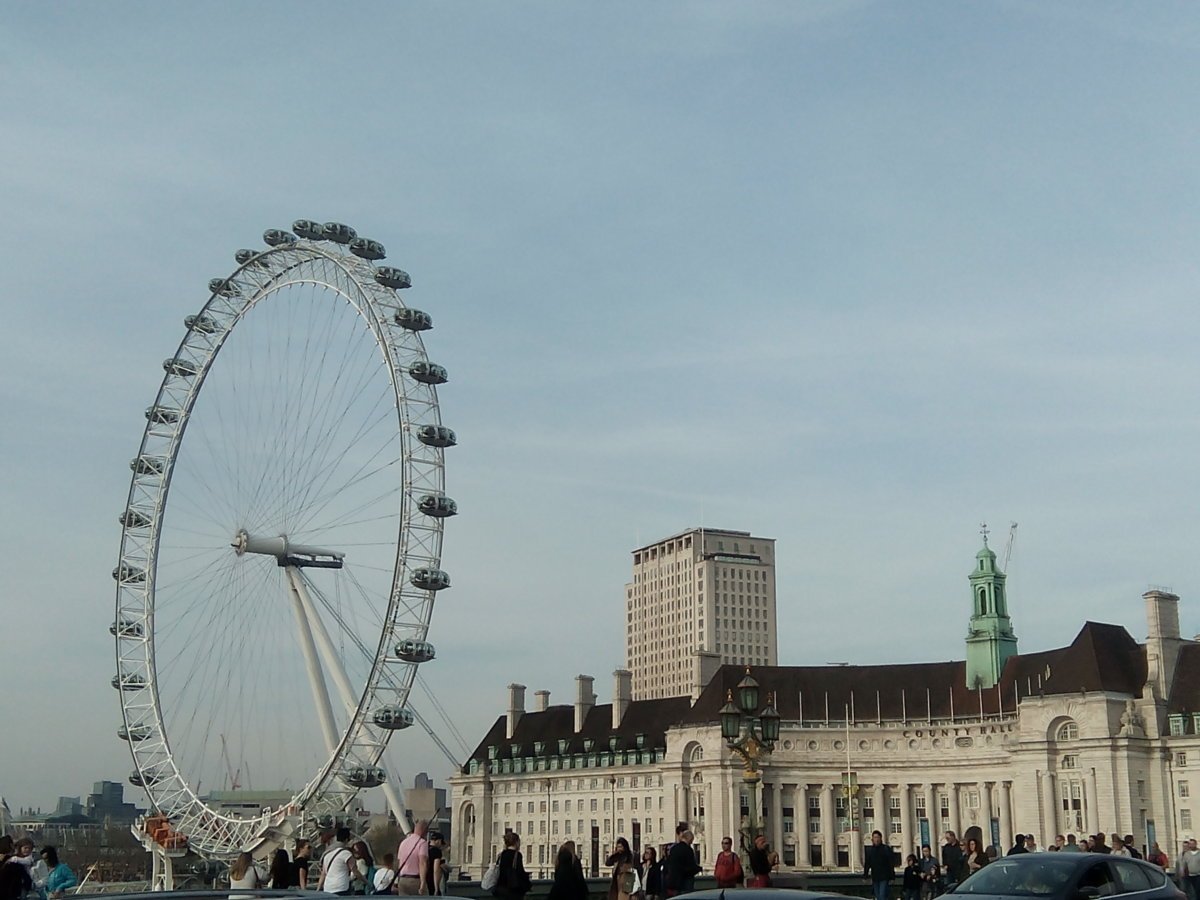 Eντυπωσιασμένοι συνεχίσαμε κατεβαίνοντας την white hall κάνοντας ψώνια, πάλι σουβενίρ και δωράκια για τα παιδιά όπως αφίσες για το δωμάτιο τους κ.λ.π. Σε λίγη ώρα και αφού χαζέψαμε λίγο την πρωθυπουργική κατοικία βρισκόμασταν έξω από το κοινοβούλιο και το αβαείο του Westminster.Περάσαμε την γέφυρα και καταλήξαμε στο London eye.Δεν μας έκανε όρεξη να ανεβούμε αλλά δεν είχαμε και χρόνο γιατί είχα κάνει κράτηση στο εστιατόριο του oxo tower.Το ξενοδοχείο ήταν μόλις δυο στάσεις μακριά αλλά τα πόδια μας δεν άντεχαν άλλο κι έτσι πήγαμε να φρεσκαριστούμε λίγο στο ξενοδοχείο παίρνοντας το λεωφορείο.