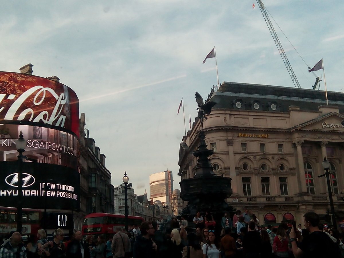 Νιώθαμε κούραση και πως τα πόδια μας δεν μας κρατούσαν γι ΄αυτό και γυρίσαμε στο ξενοδοχείο με τον underground (μετρό δηλαδή) για πρώτη μου φορά .Εκεί μέσα είχε πολύ ζέστη, φαντάζομαι πως θα είναι μια ζεστή καλοκαιρινή μέρα! Άσε που για να βρούμε την γραμμή μας περπατούσαμε και περπατούσαμε κάτω από την γή …(Την κάρτα ανέπαφων συναλλαγών στην χτυπήσαμε όταν μπήκαμε αλλά και όταν βγήκαμε από τον σταθμό).Είχαμε ανάγκη να ξεκουραστούμε λιγουλάκι. Βραδάκι ξαναβγήκαμε πρώτα για φαγητό με θέα τον Άγιο Παύλο .Έπειτα για ποτό κοντά στην Picadilly circus και καθώς ήταν Σαββατόβραδο, γινόταν πανικός. Σε αυτό το σημείο ακριβώς ήταν που ένιωσα σαν να ήμουν στο κέντρο του κόσμου. Ήταν μια η ώρα μετά τα μεσάνυχτα και η φίλη μου, μου έλεγε πως τόσες φορές είχε έρθει Λονδίνο με Group και ποτέ δεν είχε συναντήσει τόσο κόσμο. Πίστευε πως μετά τις δέκα δεν κυκλοφορούσε ψυχή στο Λονδίνο αλλά προφανώς ήταν η περιοχή που τους άφηναν τα ταξιδιωτικά γραφεία.