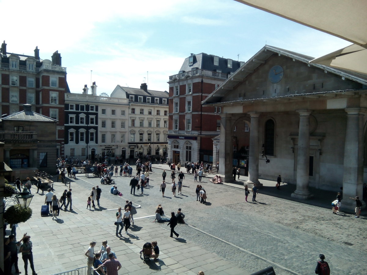 Μετά το πρωινό (κοινώς περιδρόμιασμα) μαζέψαμε και ετοιμάσαμε τα πράγματα για να παραδοθούν στο χώρο φύλαξης αποσκευών. Προορισμός ήταν το Covent Garden . Βρεθήκαμε εκεί σε δεκαπέντε λεπτά με ένα από τα λεωφορεία που περνούσαν απέναντι από το ξενοδοχείο. Δεν κάναμε μόνο βόλτα. Σκοπός ήταν να πάω την φίλη μου στο tea house και το wittard tea shop για να εκτονώσει το καταναλωτικό της ένστικτο γι’ αυτό που αγαπά ,δηλαδή το τσάι. Κρατώντας σακούλες με κρυστάλλινες τσαγιέρες, ποικιλίες τσαγιού, κουτάκια και άλλα αξεσουάρ μπήκαμε σε ένα καφέ με ωραία θέα του Covent Garden.Δοκίμασα από τα καλύτερα Macaron της ζωής μου, που είναι από τα αγαπημένα μου γλυκά, χαζεύοντας τους perfomers της πλατείας. Συνεχίσαμε στην Jean str για να καταλήξουμε στην Νeal’ s Yard μια χαριτωμένη πολύχρωμη αυλή.