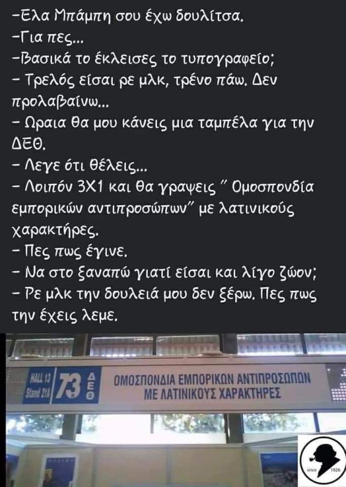 Ε μα κι αυτός ήθελε ταμπέλα που να γράφει omospondia emporikon antiprosopon;; Καλά να πάθει! 😛😁