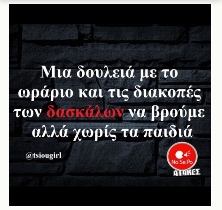 Μην "τσιμπάς". Κι εγώ δάσκαλος ήμουν τώρα συνταξιούχος.Κακίες, και αλήθεια λέω σαν σύζυγος καθηγήτριας και φίλος έτερης διδασκάλου εδώ μέσα......