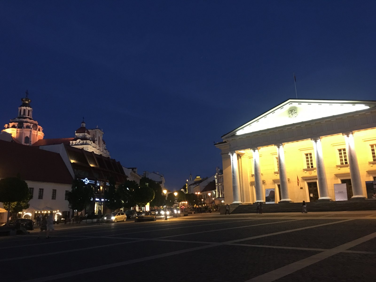 Αφού άραξα και έβγαλα της απαραίτητες φωτογραφίες αποφάσισα να κατέβω και να συνεχίσω την βόλτα μου. Επομένη στάση ξανά η πλατεία με τον καθεδρικό ναό του Βιλνιους. Πίσω ακριβώς από τον καθεδρικό ναό είναι το παλάτι του Μεγάλου Δουκα. Του έριξα μια μάτια αλλά ήταν πολύ αδιάφορο. μπήκα στον καθεδρικό ναό ο όποιος εξωτερικά μοιάζει πολύ με αρχαίο ελληνικό ναό αλλά μέσα δεν ήταν και τίποτα το ιδιαίτερο. Δίπλα είχε και ένα πύργο με καμπάνα τον όποιο για να ανέβεις έχει είσοδο 4-5 ευρω. Δεν νομίζω ότι αξίζει να δώσεις αυτά τα λεφτά αν έχεισ ανεβεί στο καμπαναριό του πανεπιστήμιο ή στον λόφο με τους 3 σταυρούς.