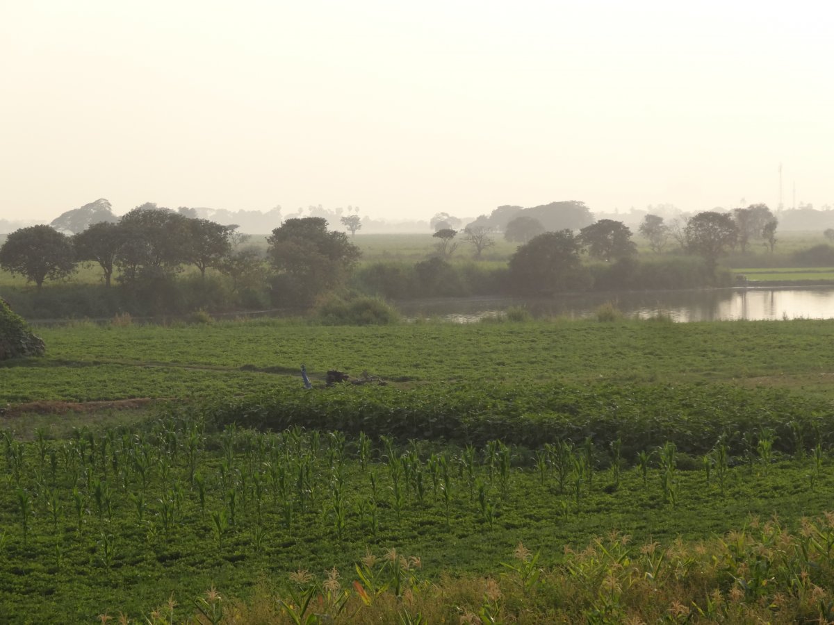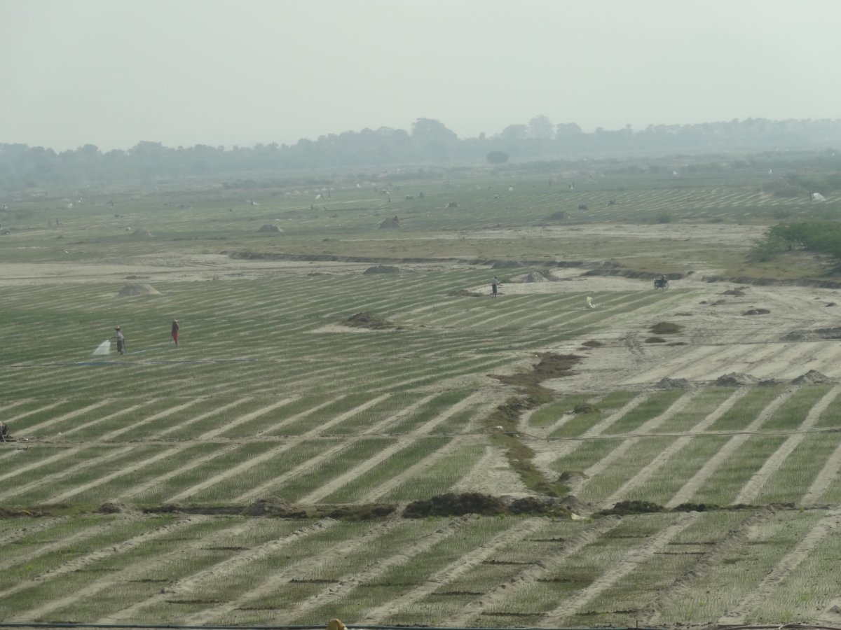 Πριν φτασουμε στον προορισμο μας, το τοπιο ειναι αγροτικο , ειδαμε εκατονταδες εργατες στα χωραφια καθως και πολλα λιποσαρκα ζωα ...