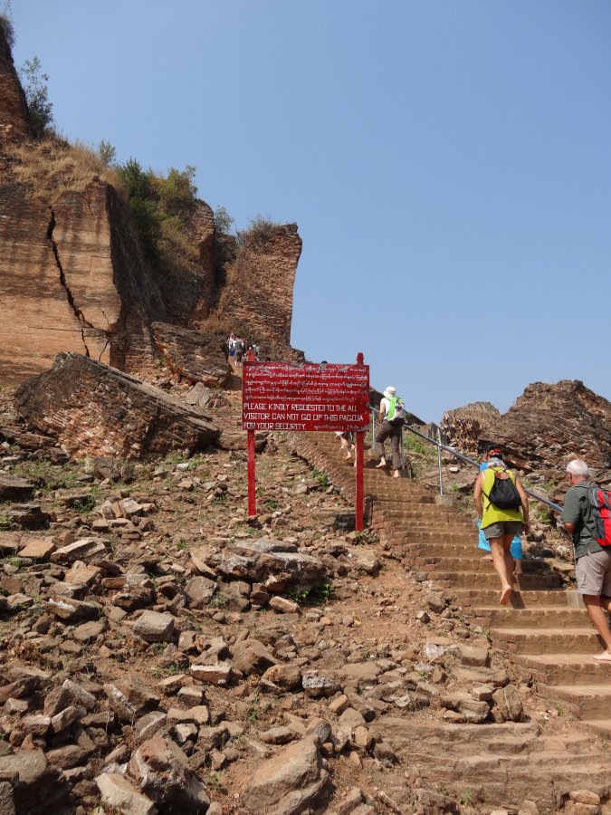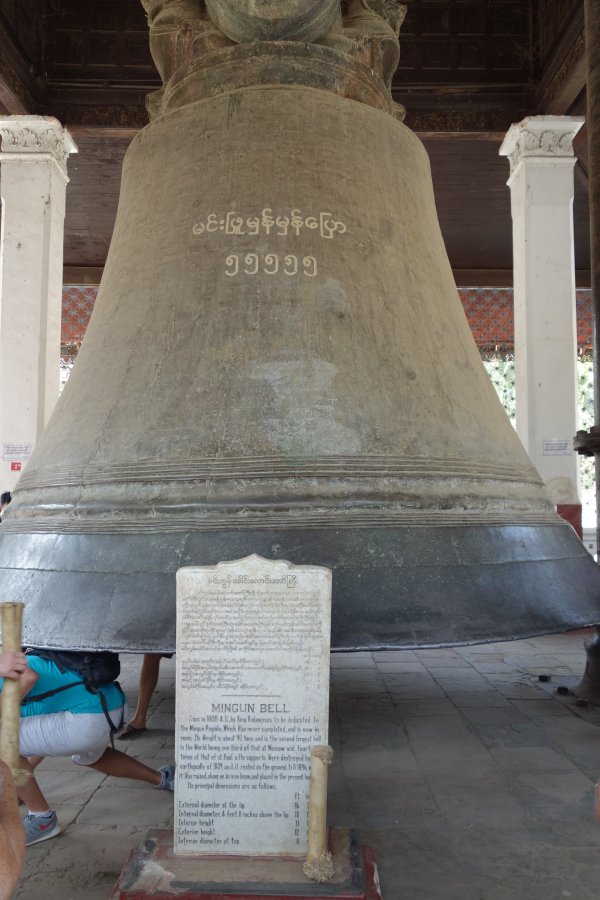 Την επομενη μερα πηγαμε με σκαφος στο Mingun . Εκει εκτος απο την ιδιομορφη παγοδα (η οποια δεν ολοκληρωθηκε ποτε) μπορειτε να δειτε και την δευτερη μεγαλυτερη καμπανα στον κοσμο (πληροφορια lonely planet). Στην παγοδα μπορεις να ανεβεις τα σκαλια (αν και απαγορευετε, δειτε την πινακιδα