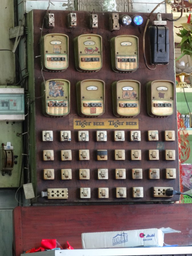 Η πολη της mandalay δεν μας ενθουσιασε ακριβως , αλλα γενικα περασαμε ενα ωραιο τριημερο. Ολο το ζουμι ειναι στα περιχωρα . Ακομα και εδω στην πολη ο χρονος μοιαζει κολλημενος πισω στο παρελθον. Οπως αυτος ο παναρχαιος ηλεκτρικος πινακας σε ενα εστιατοριο , το παλιο ποδηλατο η το vintage ταχυδρομικο κουτι !