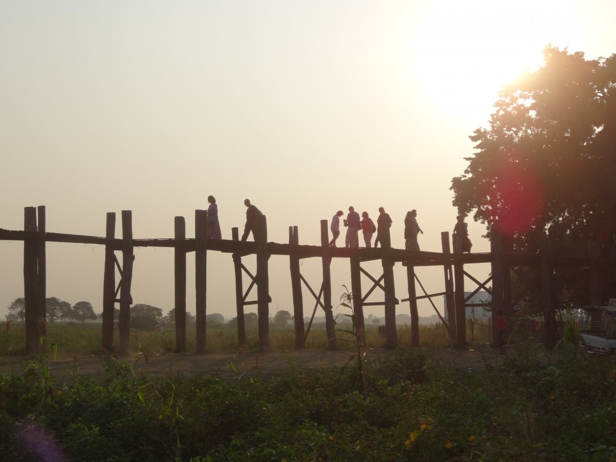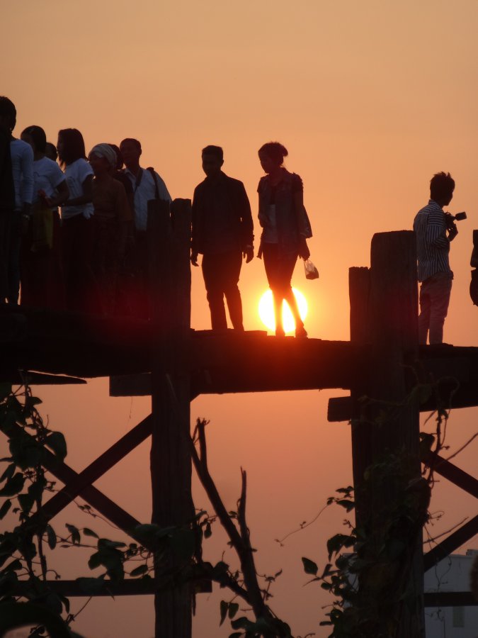 Για να απολαυσεις μια ιδιαιτερη δυση πρεπει να πας στην παλαιοτερη και μεγαλυτερη ξυλινη γεφυρα (1,2 χλμ) στον κοσμο, την U Bein. Η περιοχη ειναι καταπρασινη και πανεμορφη. Βεβαια εχει πολυ κοσμο , ειδικοτερα ντοπιους , αλλα ο δρομος ειναι μακρυς και ολοι οι καλοι χωρανε! Ψαραδες , πουλια και ψαρια συνυπαρχουν