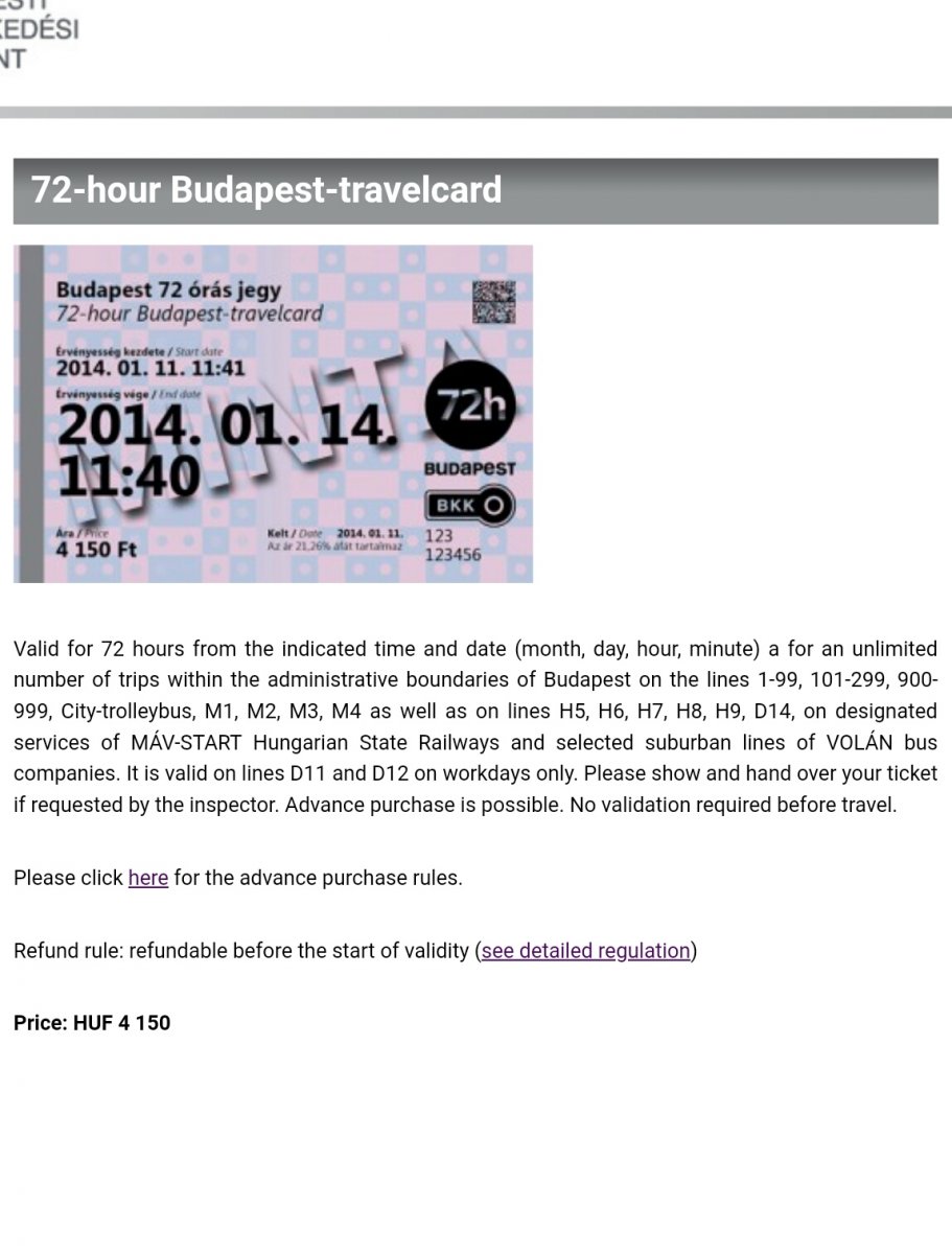 Για διαμονή 4 ημερών αξίζει η εβδομαδιαία κάρτα που κοστίζει κοντά στα 15 ευρώ και ισχύει για όλα τα μέσα μαζικής μεταφοράς. Μεγάλη προσοχή γιατί έχει έλεγχο παντού, αν δεν έχετε εισιτήριο δεν μπορείτε καν να μπείτε μιας και στις κυλιόμενες σκάλες κάθε σταθμού υπάρχουν ελεγκτές. Το εισιτήριο σας έχει ονοματεπώνυμο πάνω έτσι δεν χρειάζεται να το χτυπήσετε κάπου εκτός αν πάρετε μεμονωμένα εισιτήρια όποτε ισχύει ότι και στην Αθήνα. Με Budapest card δεν ασχολήθηκα καθώς για αυτά που ήθελα να δω δεν άξιζε να πληρώσω παραπάνω λεφτά, μπορεί άλλους να τους συμφέρει (η κάρτα αυτή εκτός από εκπτώσεις σε μουσεία δίνει και απεριόριστες διαδρομές με τα μέσα μεταφοράς).Για τις μετακινήσεις μέχρι 5 άτομα (ειδικά αν ταξιδεύουν οικογένειες) βόλευει κ η 24ωρη κάρτα απεριοριστων διαδρομών για 5 άτομα με 3300 HUF αλλά έχει το μειονέκτημα ότι πρέπει να είστε όλη την ώρα μαζί και χάνετε σε αυτονομία.