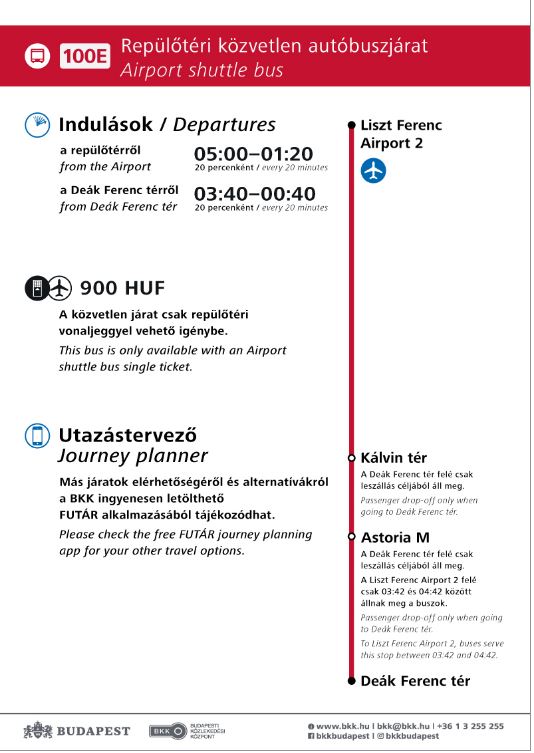 Προσοχή!Για το λεωφορείο αυτό δεν ισχύει η κάρτα απεριορίστων διαδρομών και θα πρέπει να αγοράσετε ξεχωριστό εισιτήριο αξίας 900 HUF.