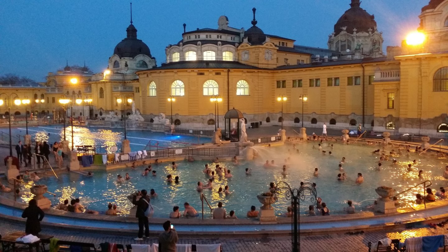 Επιστροφή στο ξενοδοχείο ξεκούραση και μετα τις 17:00 πάρτε μια τσάντα που να έχει μέσα πετσέτα μαγίο και σαγιονάρες και πηγαίντε Σεζεζνι με το μετρό ασφαλώς άλλωστε έχει μια στάση ακριβώς απέξω(διαβάστε το σύστημα των λουτρών στον οδηγό που έχω φτιάξει). Αξίζουν περισσότερο οι εξωτερικές πισίνες και αν έχει κρύο θα ξετρελαθείτε. Το βράδυ φαγητό στο Hungarikum Bistro που είναι δίπλα στη βουλή , απλά απίστευτες γεύσεις δεν λέω τίποτα άλλο. Δοκιμάστε το κότσι στη γάστρα και σούπα γκούλας οπωσδήποτε. Για να πιείτε μπύρα είναι πολύ καλό το FOR SALE PUB αν σας βαστάνε τα πόδια σας (βλέπε οδηγό)
