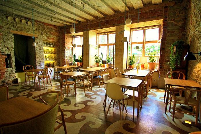 Το εστιατόριο είχε όντως ένα καλαίσθητο εσωτερικό σε δύο χώρους, με την πέτρα και το ανοιχτόχρωμο ξύλο να κυριαρχούν, και έναν στενό κηπάκο στο πλάι με μία σειρά από τραπέζια. Το μαγαζί ήταν σχεδόν γεμάτο. Αν και βρήκαμε ένα τραπέζι μέσα ζητήσαμε να καθίσουμε στον κήπο. Μας είπαν ότι θα έπρεπε να περιμένουμε λίγο, αλλά όχι πολύ αργότερα μας οδήγησαν στο τραπέζι μας.