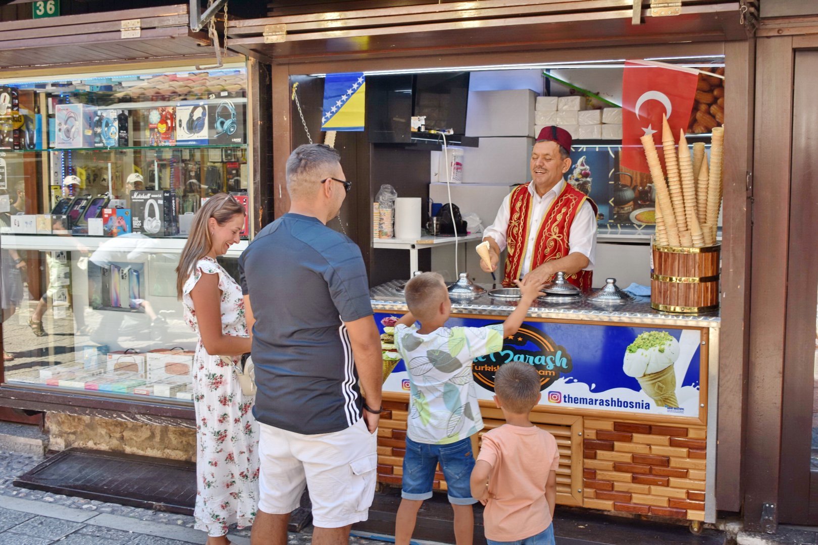 Βρήκα το ξενοδοχείο κι αφού άφησα τα πράγματα χωρίς να μπορέσω να πάρω το δωμάτιο νωρίς, πήρα τη φωτογραφική μηχανή και βγήκα έξω για τις πρώτες αναγνωριστικές βόλτες. Λίγα μέτρα από κει ήταν η ιστορική αγορά «Baščaršija», σημείο συνάντησης της πόλης εδώ κι αιώνες, με το χαρακτηριστικό ξύλινο σιντριβάνι «Sebilj», σύμβολο της πόλης του Σαράγιεβο: