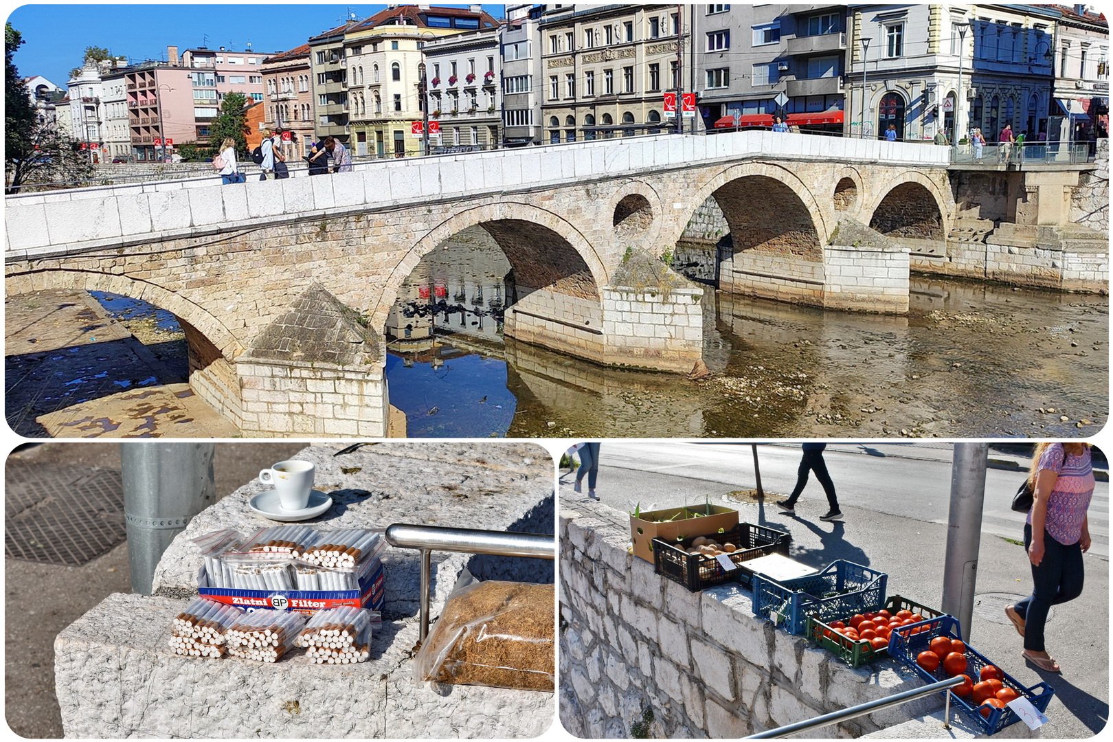 Επιστρέφοντας προς το κέντρο συνάντησα και τη γέφυρα «Latinska Ćuprija», υψίστης ιστορικής σημασίας αν και δε της φαίνεται, μιας κι εκεί στις 28 Ιουνίου του 1914 δόθηκε η αφορμή (σύμφωνα με κάποιους ιστορικούς) για την έναρξη του Α’ παγκοσμίου πολέμου, με τη δολοφονία του αρχιδούκα της Αυστρουγγαρίας Franz Ferdinard. Στο σήμερα βέβαια τίποτα δε θυμίζει αυτό το γεγονός, βλέποντας εν αντιθέσει τις βαλκανικές εικόνες που προσωπικά μου έχουν λείψει, με τη πώληση οπωροκηπευτικών και χύμα τσιγάρων: