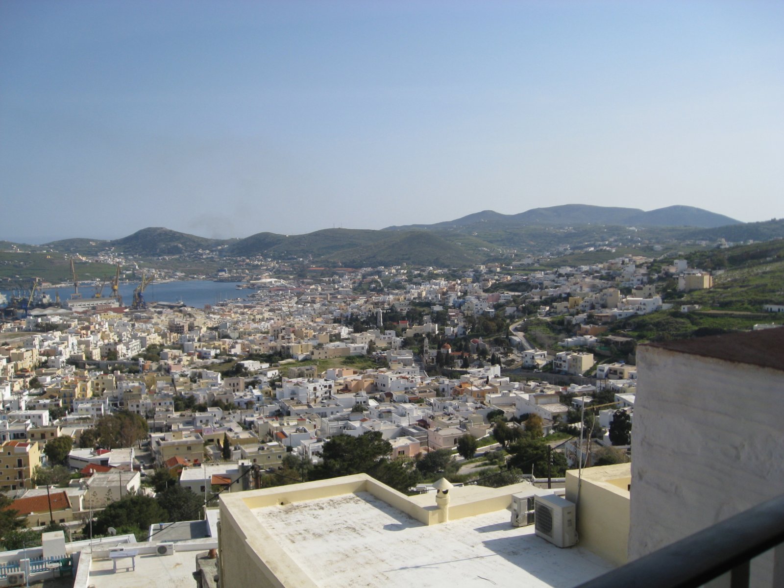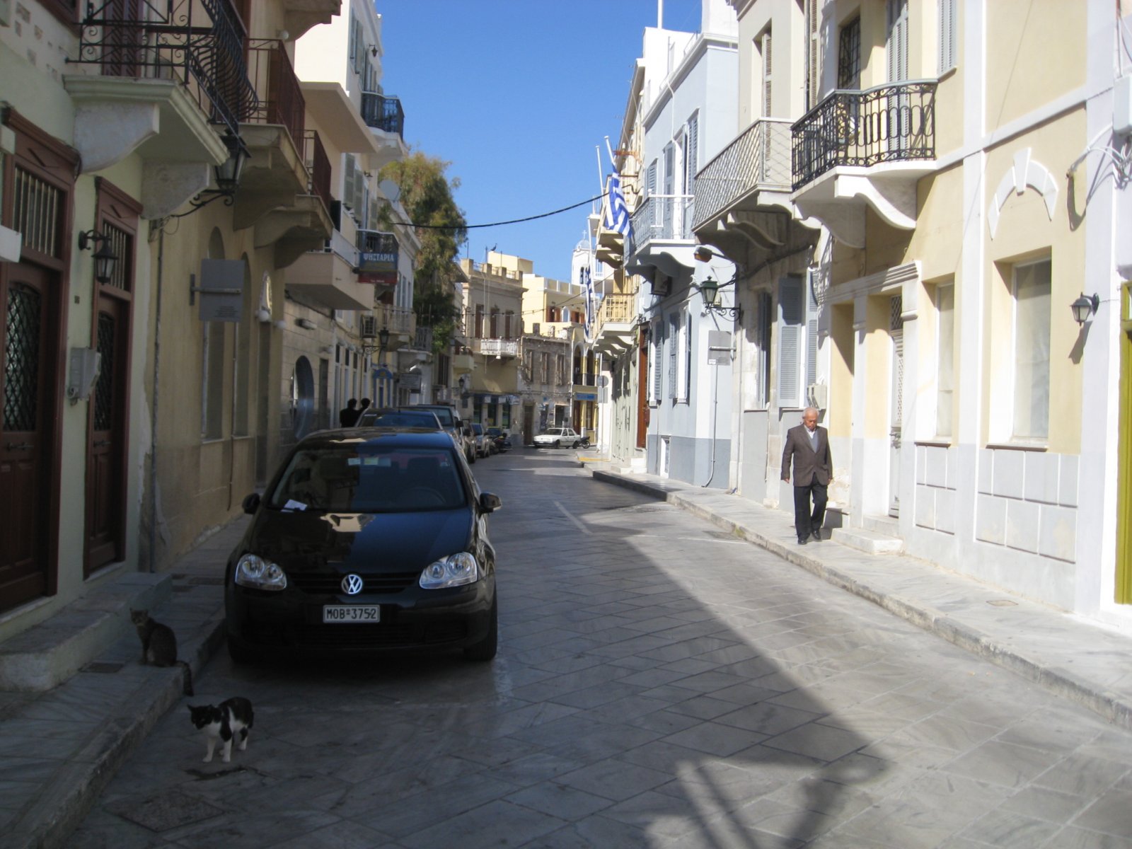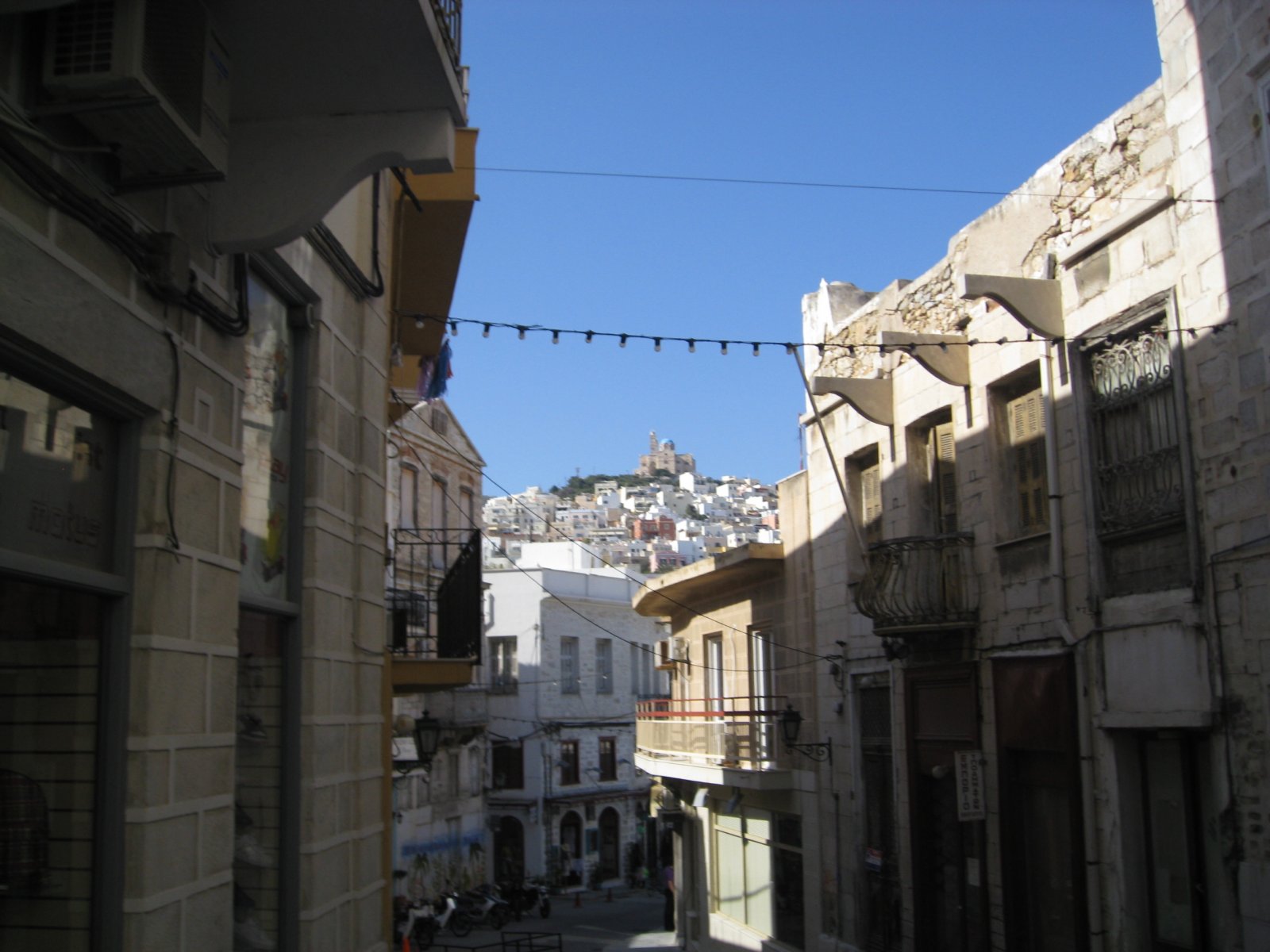 Τα δωμάτια ήταν στο κέντρο, λίγο πάνω από το λιμάνι και αποτελούσαν προσωπική επιλογή μετά από ψάξιμο. Ήταν ίσως η πρώτη μου κράτηση ιντερνετικά. Δε χάσαμε χρόνο και βγήκαμε αμέσως βόλτα στα στενά της Ερμούπολης: