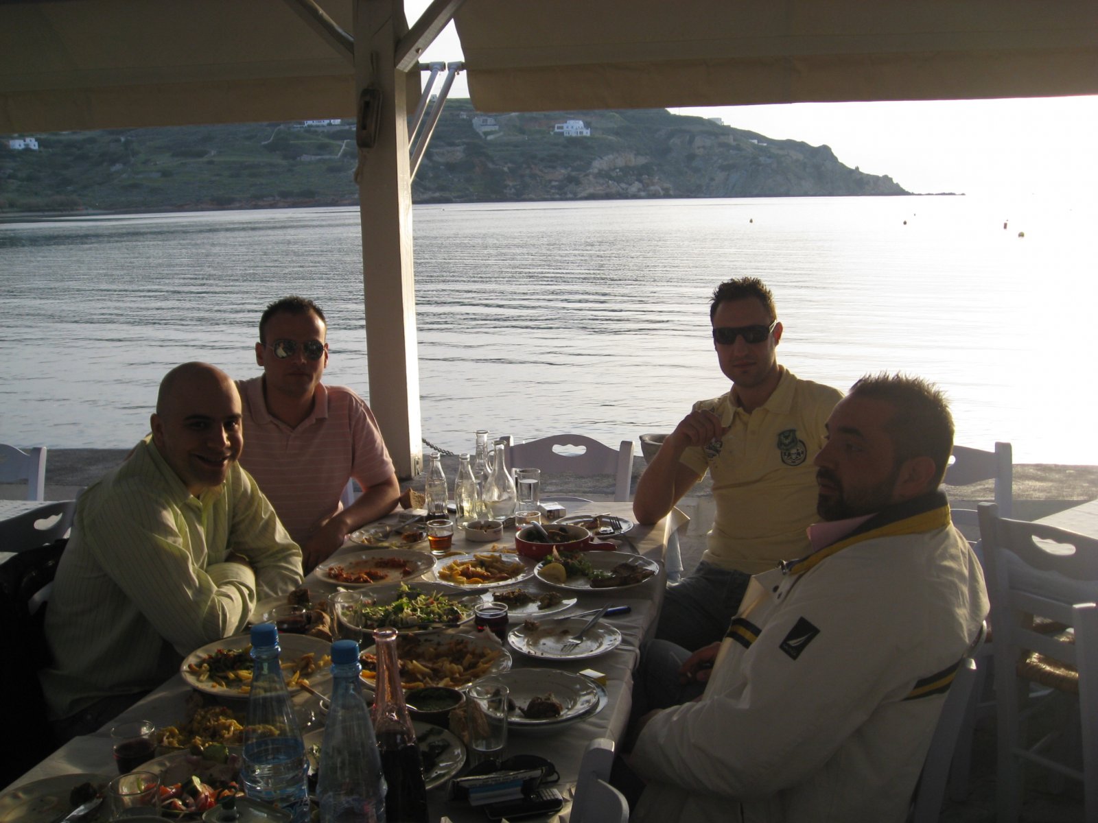 Όπως ήταν λογικό το τραπέζι αυτό μας τράβηξε σα μαγνήτης, μέχρι να πέσει ο ήλιος πίσω απ’ το λιμάνι απέναντι μας: