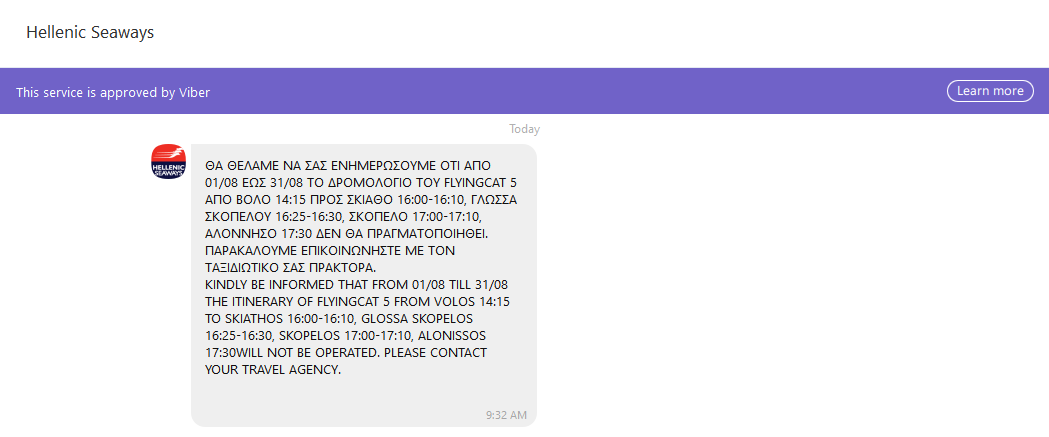 Μου ήρθε το παρακάτω μήνυμα κι ενώ είχα ήδη αγοράσει εισιτήρια για Αλόννησο. Μονόδρομος πλέον το αργό. Και κανένα email, κανένας λόγος για refund.
