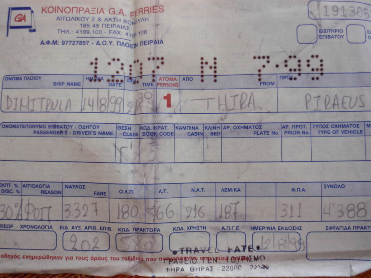 Τι να σου πω τώρα...Ότι πετάξαμε τα εισιτήρια για Σίφνο όλη η παρέα γιατί έκαναν μόνο 2500 δρχ στο λιμάνι του Πειραιά και φύγαμε για Πάρο γιατί είδαμε το καράβι μπροστά μας και μας φάνηκε καλή ιδέα; Τιμές δάπεδο τότε...