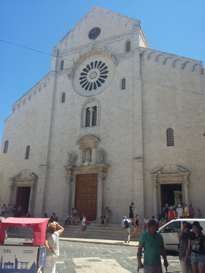 Ξεκινήσαμε λοιπόν την εξευρένηση της πόλης αμέσως με κατεύθυνση τον Ναό του Αγίου Νικολάου που είναι και το σημαντικότερο αξιοθέατο του Μπάρι,περνώντας από το υπέροχο κτίριο του Teatro Petruzzelli που ξεχωρίζει με το ιδιαίτερο χρώμα του.