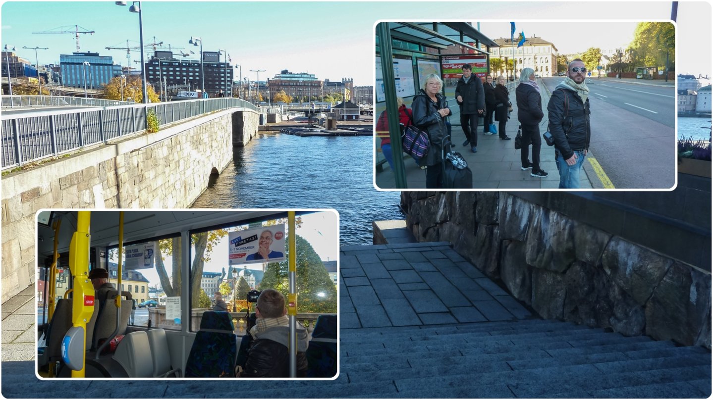 Μπροστά από το δημαρχείο από τη στάση Stadshuset πήραμε το λεωφορείο 3. Επόμενη στάση το Slussen και η αρχή της περιήγησης στο Sodermalm.