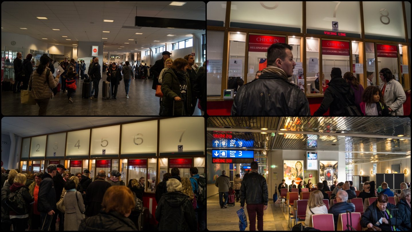 Το κρουαζιερόπλοιο M/S Gabriella της Viking Line ήταν αγκυροβολημένο και περίμενε. Μέσα στον σταθμό επικρατούσε χαμός από κόσμο. Είχα εκτυπώσει την κράτηση αλλά έπρεπε να περάσουμε από τα ταμεία για να μας εκτυπώσουν το κανονικό εισιτήριο. Υπόθεση γρήγορη και κάπου εκεί μου έφυγε το άγχος και ξεκίνησε η χαρά αλλά περίμενα να δω και τι σόι καμπίνα θα έχουμε.