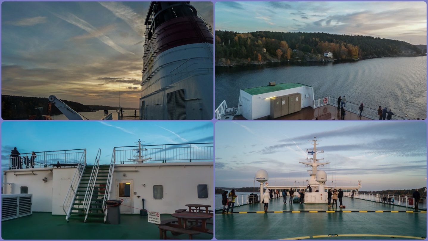 Αφού τακτοποιηθήκαμε και είχε φτάσει η ώρα που το πλοίο θα αναχωρούσε δεν χάσαμε χρόνο και ανεβήκαμε στον 8ο όροφο και βγήκαμε στο κατάστρωμα. Είχε αέρα και ψωφόκρυο αλλά ήμουν αποφασισμένος! Θα κάτσω μέχρι να βραδιάσει, μέχρι να χορτάσω το αρχιπέλαγος. Το πλοίο απομακρύνθηκε και αποχαιρετήσαμε τη Στοκχόλμη την μαγική ώρα του ηλιοβασιλέματος.