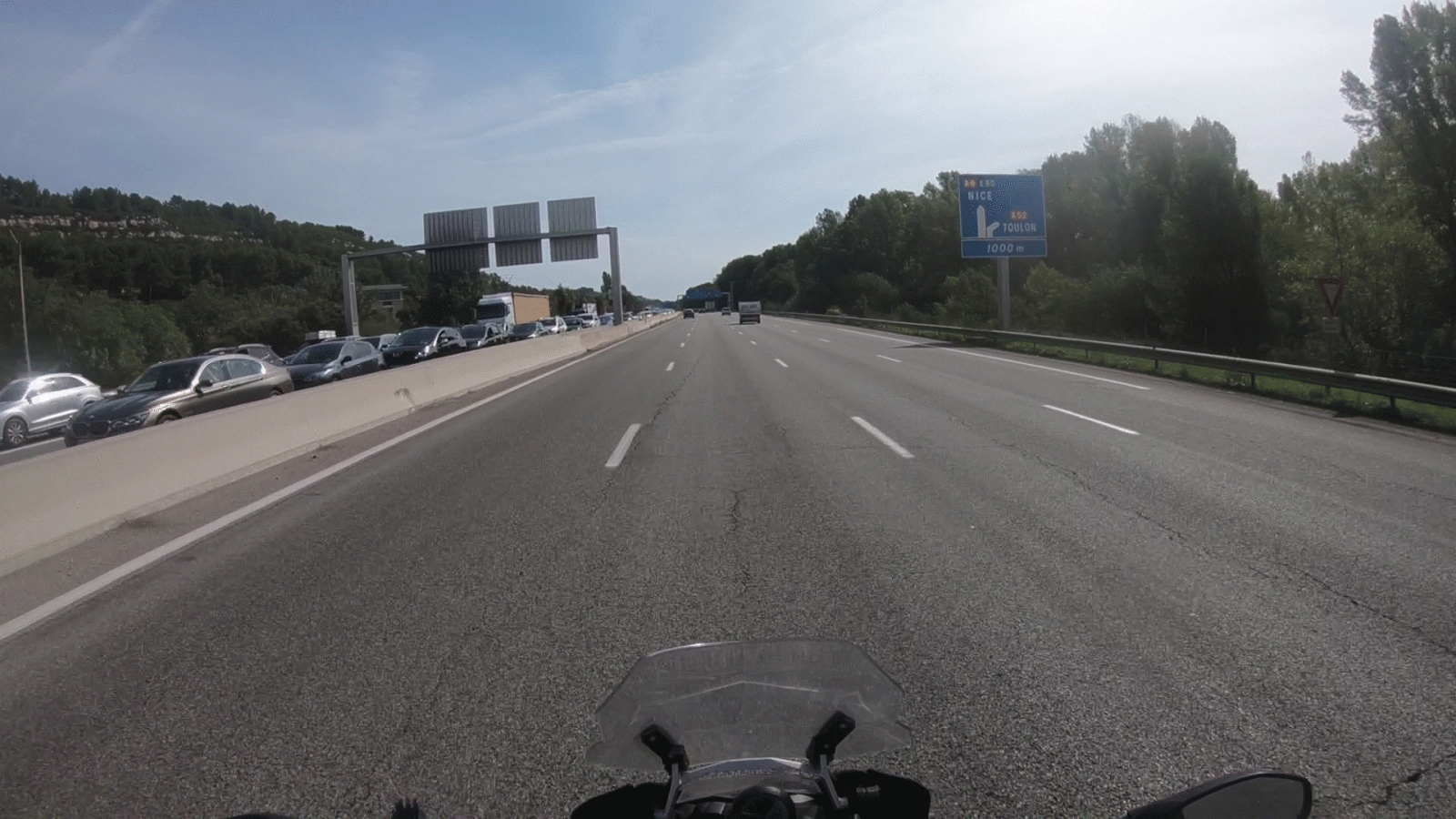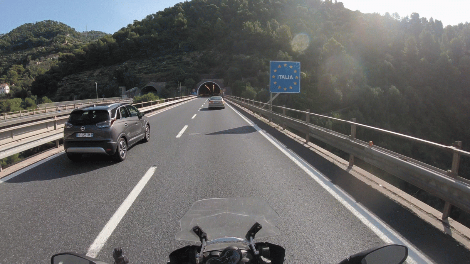 Μετά από 30 χλμ αποχαιρετώ τη Γαλλία. Αυτή τη φορά η αλλαγή συνόρων δεν θα γίνει μέσα σε τούνελ (Frejus) όπως στην αρχή του ταξιδιού, αλλά πάνω σε μια υπερυψωμένη γέφυρα.