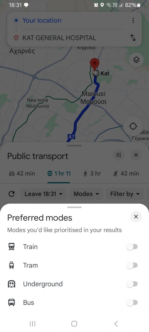 Google maps και βαζεις ρυθμιση να μη δειχνει τρενα. Μονο μετρο τραμ και λεωφορειαΚαλησπέρα. Καινούργια στο γκρουπ. Θα ήθελα να σας ρωτήσω αυτό το το ημερήσιο εισιτήριο που περιλαμβάνει τις γύρω περιοχές του Ρότερνταμ, πώς θα δω ποιο λεωφορείο ή ό,τι άλλο μέσο μεταφοράς, μπορώ να πάρω. Δηλαδή αν θέλω μία μέρα να πάω από Ρότερνταμ προς Χάγη με μία στάση στο Delft, πού θα δω από που θα ξεκινήσω τι νούμερο λεωφορείο ή τραμ ή μετρό θα χρησιμοποιήσω;;; Έχω μπει στη σελίδα, αλλά δεν μπορώ να καταλάβω τίποτα.