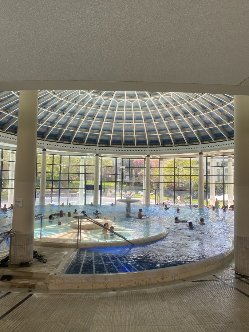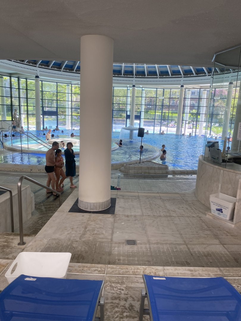 Σύγχρονος χώρος, δεν είναι το ιστορικό κτίριο UNESCO που μάλλον κοιτάς. Είχαμε λίγο χρόνο να διαθέσουμε και δεν είχαμε κάνει ιδιαίτερη έρευνα, στο site έδειχνε να είναι κλειστά. Τηλεφώνησα μια δυο μέρες πριν και μου εξήγησαν ότι ειδικά ο χώρος του Caracalla ήταν σε λειτουργία και ότι έχουν δύο spa στο ίδιο κτίριο, στο ένα υποχρεωτικά γυμνοί, στο άλλο με μαγιό. Δεν κλείνεις ραντεβού, πηγαίνεις και μπαίνεις. Ευχάριστη η εμπειρία, αν εξαιρέσουμε την πολύ μουντρούχω κυρία στο ταμείο. Εσωτερικά υπάρχουν τρεις πισίνες, δύο με ζεστό νερό και μία με κρύο νερό που πέφτει από καταρράκτη. Η μεγάλη ζεστή που δεσπόζει στον χώρο έχει τρία υψομετρικά επίπεδα με διαφορετικής έντασης μασάζ και τα ακροφύσια είναι τοποθετημένα σε διαφορετικά ύψη, για μέση, πλάτη κλπ. Κολυμπώντας μπορείς να βγεις στις εξωτερικές πισίνες, πάλι με ζεστό νερό και πιο άγρια πίεση, ο χώρος με τα "καρεκλάκια" άχαστος. Τον Σεπτέμβριο είχε τόσο-όσο κόσμο, νέοι οι περισσότεροι.