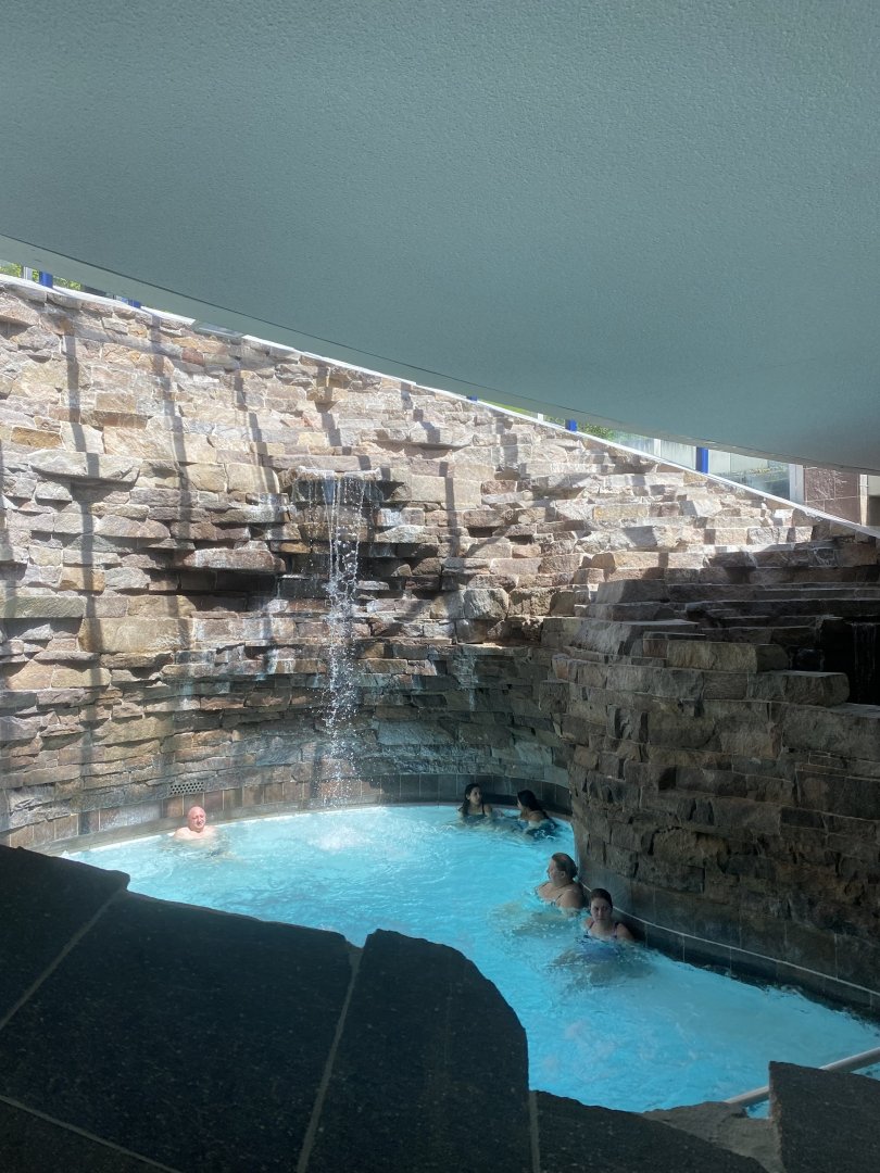 Υπαρχουν τρεις εσωτερικοί χώροι, ο ένας πιο ζεστός από τον άλλο . Το χαϊλάιτ όμως ήταν τα δυο πεντάλεπτα που κατάφερα να καθίσω στο παγωμένο νερό ! Τρομερά αναζωογονητική εμπειρία!