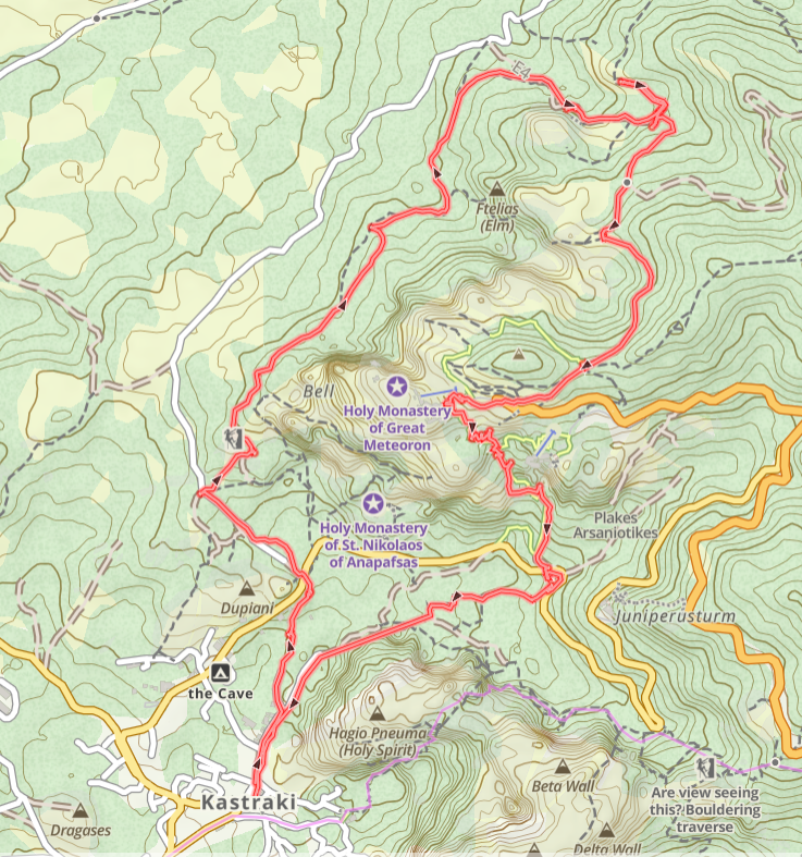 Για φαγητό δεν έχω εικόνα αλλά μία ωραία περιπατητική διαδρομή αν δεν την εχεις κάνει είναι με αφετηρία το Καστράκι - βράχο Ντούπιανης - Ιερά Μονή Υπαπαντής - Μνημείο Βλαχάβα - Μεγάλο Μετέωρο - Βαρλαάμ - Καστράκι. Στην αρχή δεν έχει κάποια σημάδια αλλά μετα τον βράχο της Ντούπιανης θα μπεις σε μονοπάτι το οποίο έχει σημάδια και αποτελεί και τμήμα του Trail Run που έχουν στην Καλαμπάκα. Παραθέτω και εικόνα από δική μου πεζοπορία.