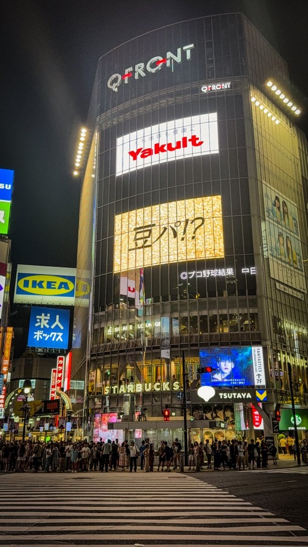 Για «κλείσιμο» της βραδιάς θέλαμε να πάμε να δούμε το Shimbuya Crossing αλλά αυτή την φορά από ψηλά. Για θέα του Shimbuya Crossing από ψηλά συνήθως πας στο Παρατηρητήριο Shimbuya Sky, πλην όμως εμείς δεν βρήκαμε εισιτήρια μιας και πρέπει να κλείσεις πολύ καιρό πριν. Θα έσκαγα αν δεν είχα και λήψη από ψηλά! Έψαξα, λοιπόν, και βρήκα την λύση που πρότειναν άλλοι τουρίστες: Πήγαμε μεν στο Shibuya Scramble Square, το κτίριο όπου βρίσκεται το παρατηρητήριο, αλλά στον 15ο όροφο αντί να κατευθυνθούμε στα ασανσέρ που σε πάνε στην κορυφή, εμείς στρίψαμε σε κάποιους διαδρόμους, βρήκαμε κάτι κυλιόμενες σκάλες και από εκεί ανεβήκαμε -παρανόμως γιατί είναι γραφεία εταιρείας- στον 17ο όροφο όπου από τις τζαμαρίες έχεις απρόσκοπτη θέα στο Shimbuya Crossing! Εκείνη την ώρα είχε μόνο δυο καθαρίστριες και έναν φύλακα που έκαναν τα στραβά μάτια και έτσι καταφέραμε να δούμε την θέα και να βγάλουμε την πολυπόθητη φώτο από ψηλά. Θα μου πεις άλλο 45ος όροφος και άλλο 17ος, όμως από το τίποτα μια χαρά ήταν κι αυτός και μάλιστα ΔΩΡΕΑΝ!!