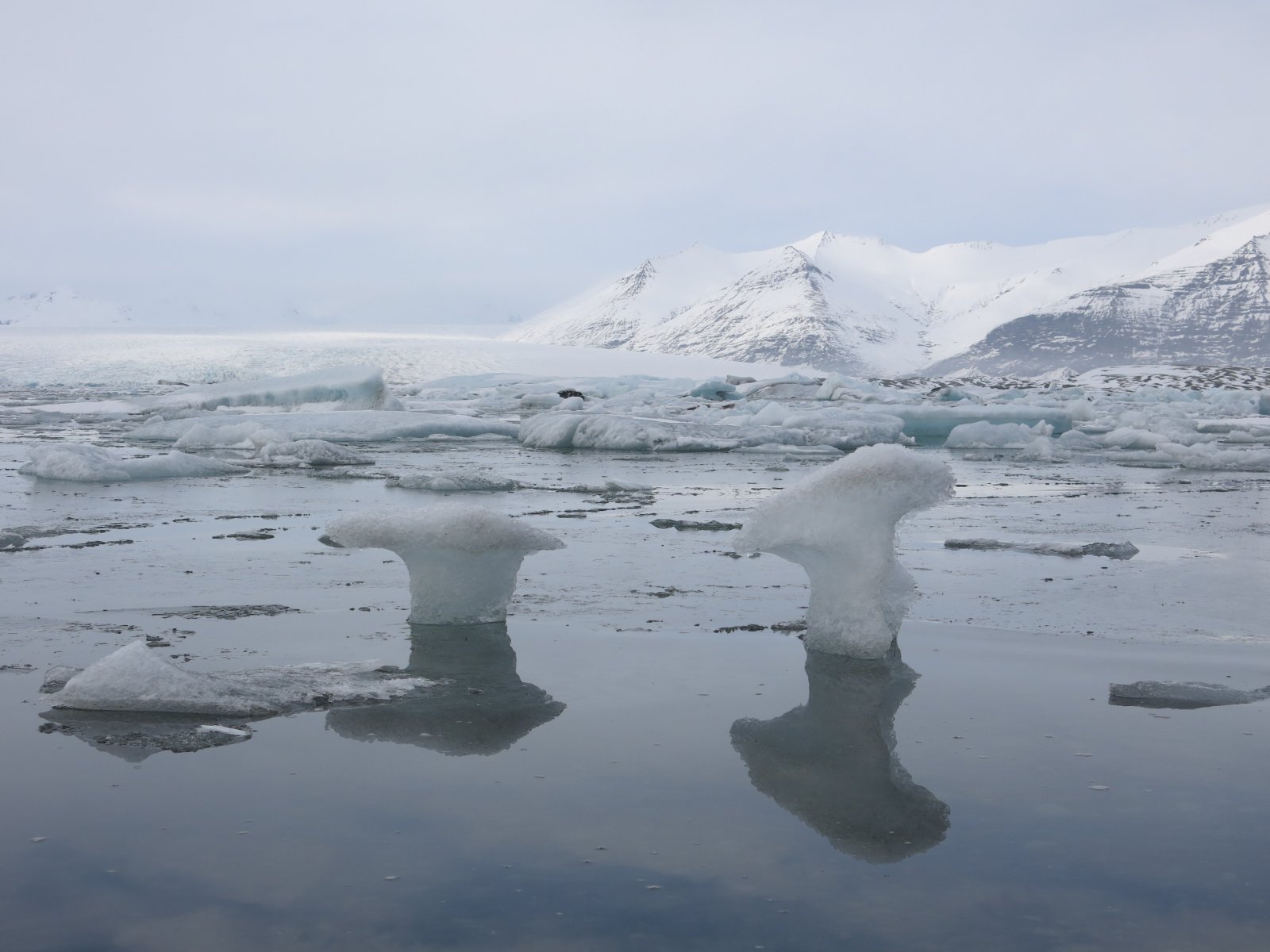 Θέλαμε να πάμε και στη λίμνη Fjallsarlon που είναι μικρογραφία της Jokulsarlon αλλά το i20 δεν μπορούσε να περάσει αυτόν το δρόμο που είχε παγωμένο χιόνι. Έτσι αρκεστήκαμε στη λίμνη Jokulsarlon η οποία συνδέεται με ένα κανάλι με τον Ατλαντικό. Αυτή η λίμνη έχει αμέτρητα παγόβουνα σε διάφορα σχήματα. Τα παγόβουνα αποκολλώνται από τον παγετώνα που είναι βόρεια της λίμνης και βολτάρουν μέσα της. Τα πιο τολμηρά δε, περνούν από το κανάλι στον Ατλαντικό και ξεκινάνε το δικό τους ταξίδι.
