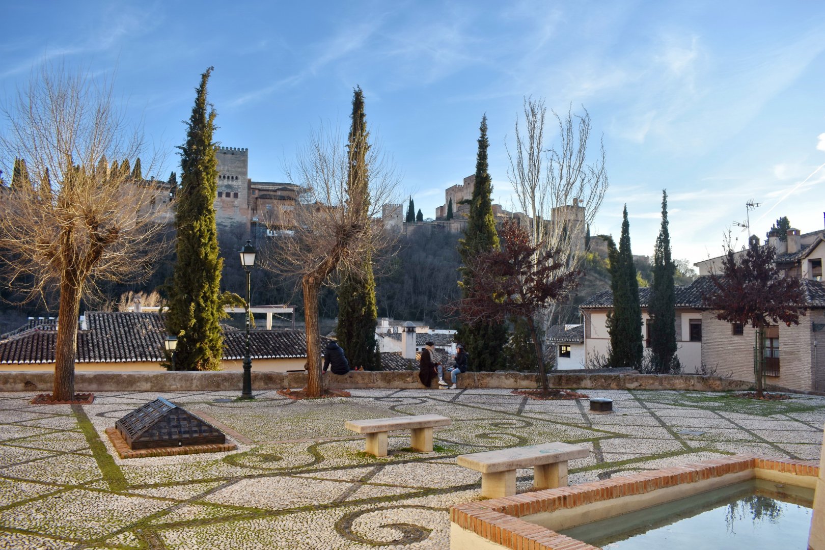 Προχωρούσα παράλληλα στο μικρό ποτάμι από ένα πεζοδρομημένο σημείο, πάρκο πολιτιστικού ενδιαφέροντος επί της ουσίας με το όνομα Paseo del Genil με πολλά ωραία σημεία, δέντρα, ιδιαίτερα αγάλματα κ.α.